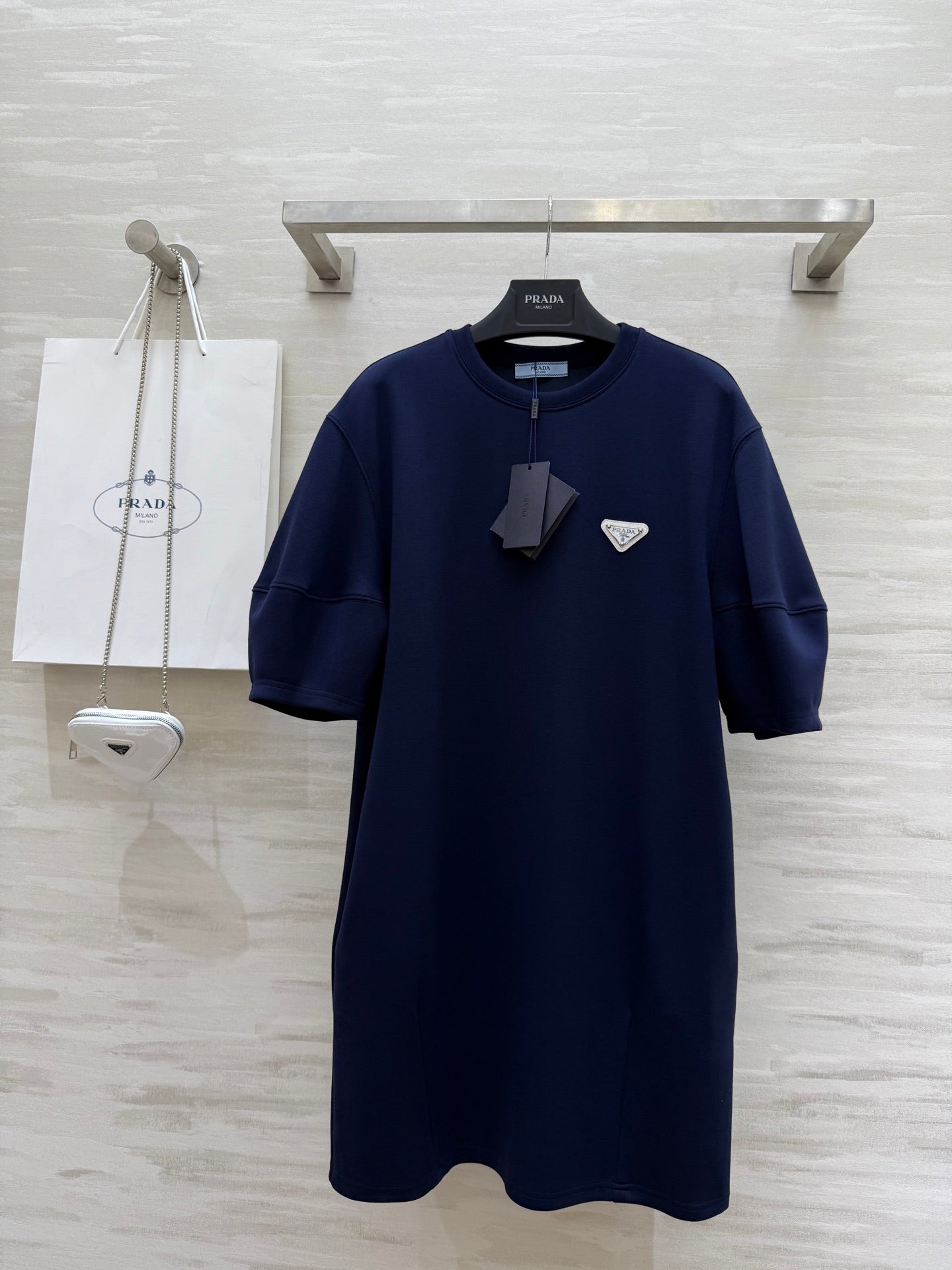 Prada 25 Triangle Logo Casual Dress Blue Cotton