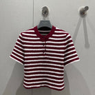 Prada 25 Yarn Striped Round Neck Knit Top White mix Red Cotton Poliamide 217770