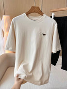 Prada Triangle Logo Round Neck T-shirt Beige Cotton