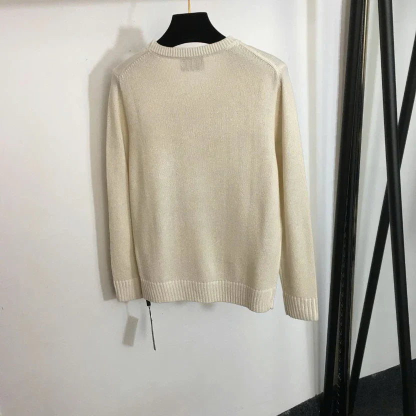 Prad Logo Crew-Neck Sweater in Natural Wool