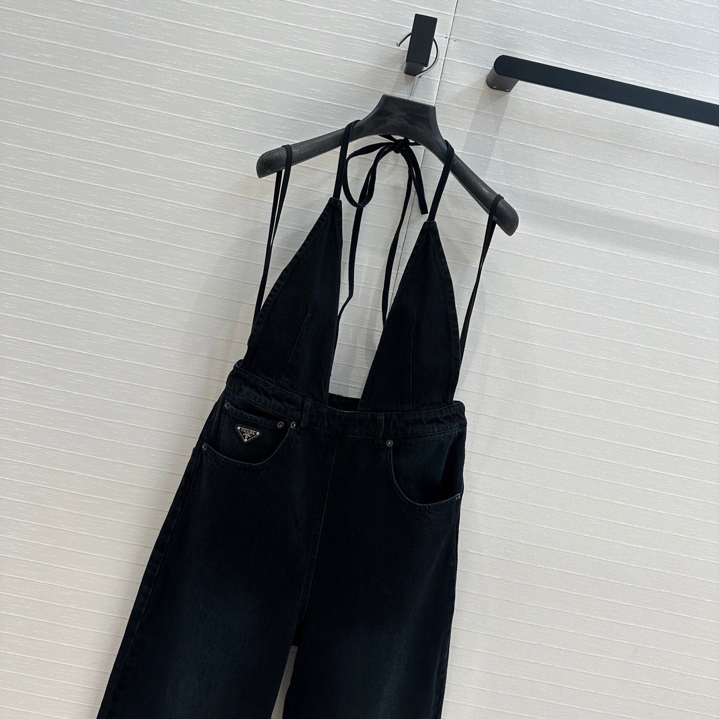 Prada 25 Halter Ntube Top Suspender Jumpsuit Black Cotton