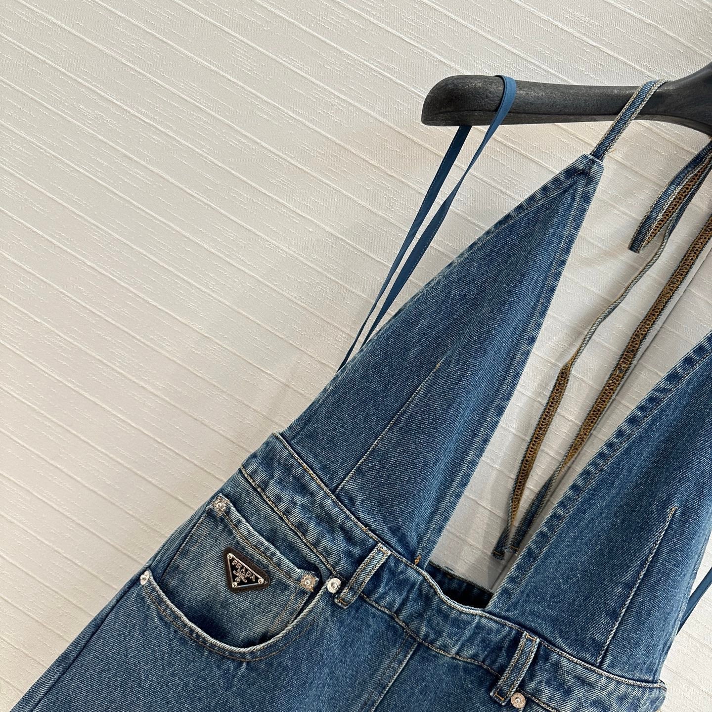 Prada 25 Halter Ntube Top Suspender Jumpsuit Blue Cotton