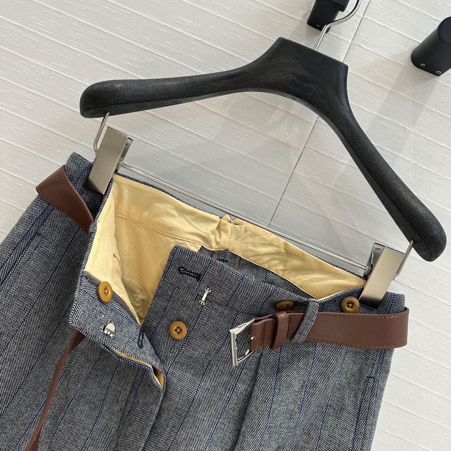 Prada Striped Suit Skirt Gray Wool Polyester