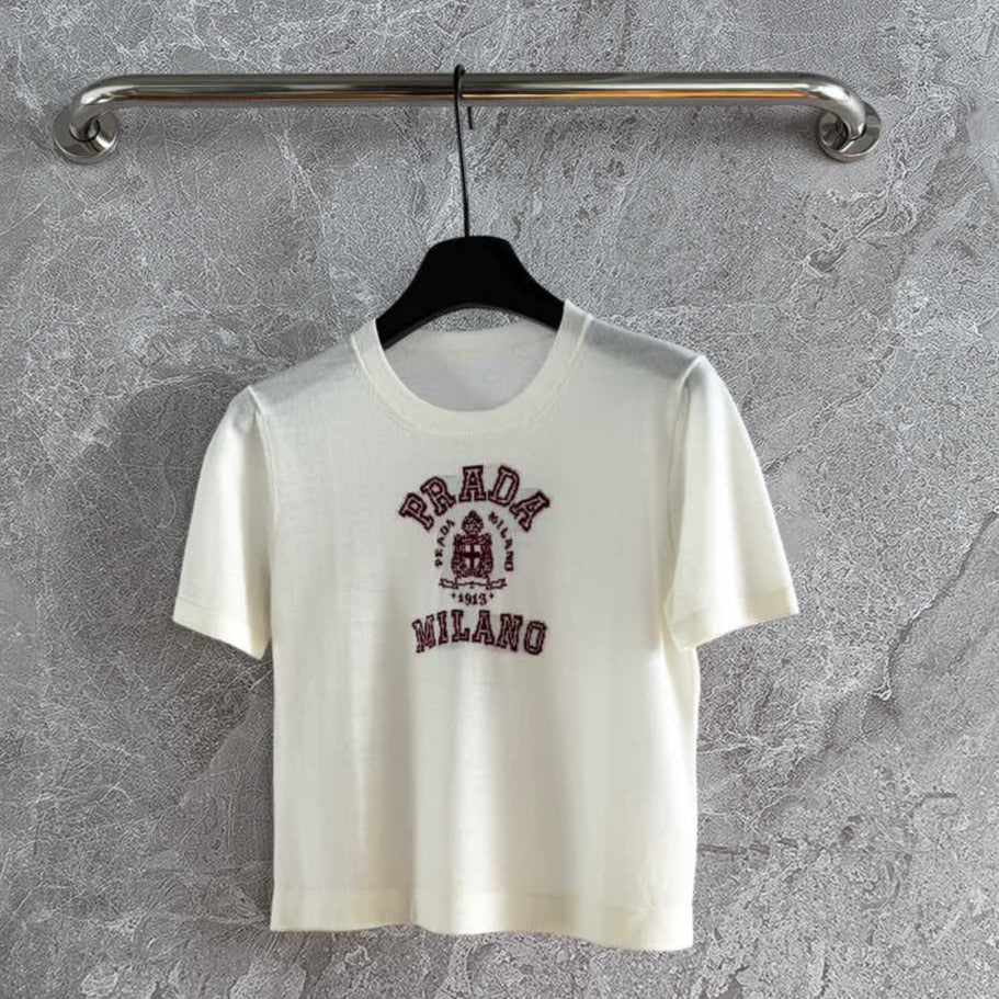 Prada Short Sleeves T-shirt Pink Wool Cashmere