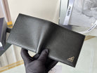 Pra 2M0513 Metal Triangle Logo Wallet 11cm Black lychee-grained cowhide