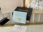 Pra Gold Logo-Stamp Card Holder Light Blue Saffiano Leather