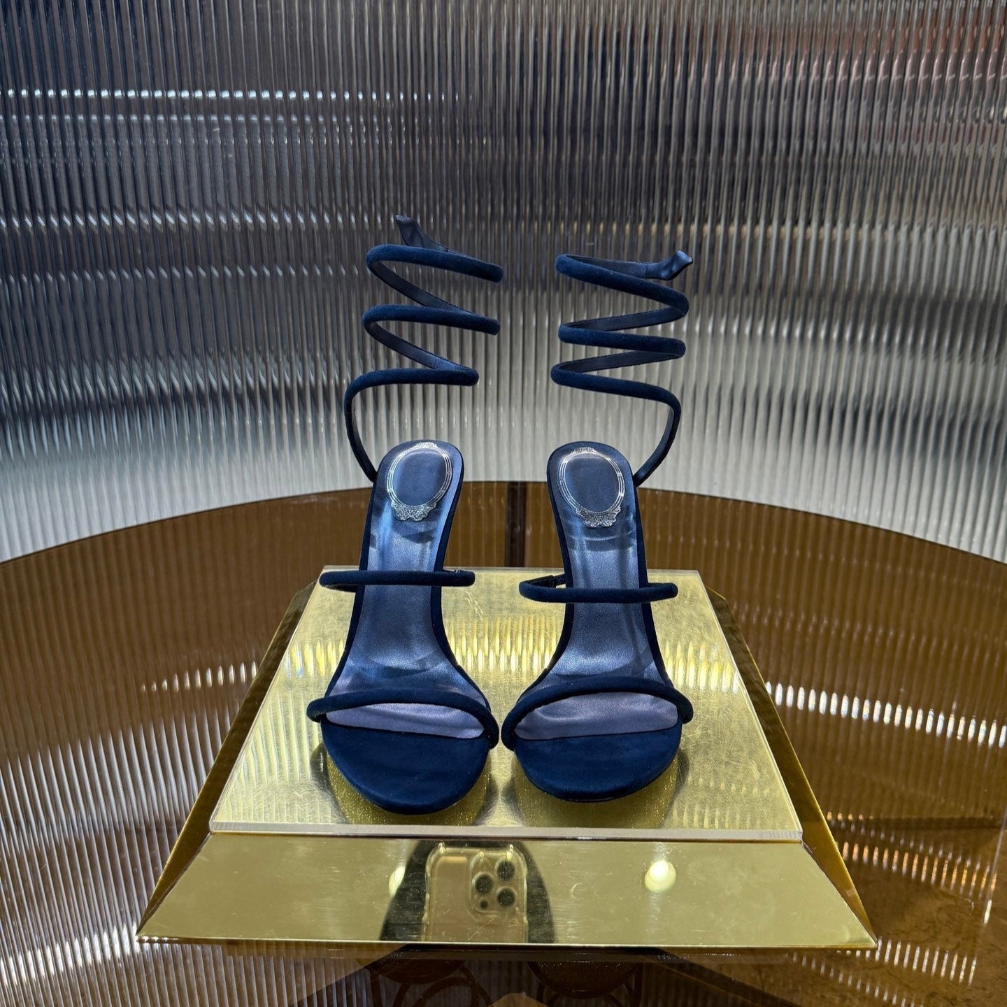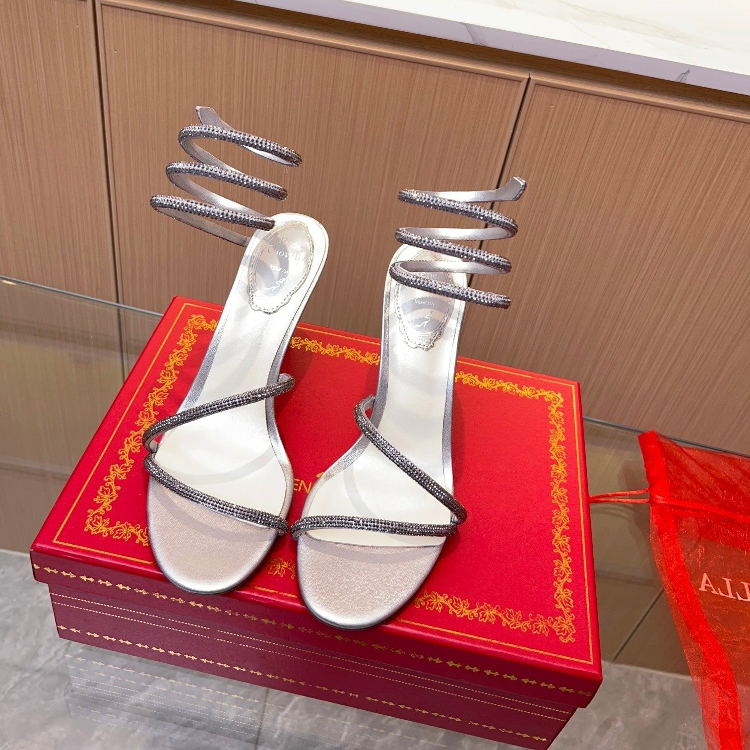 RC Cleo 105mm Crystal-Embellished Sandals Beige Satin Leather