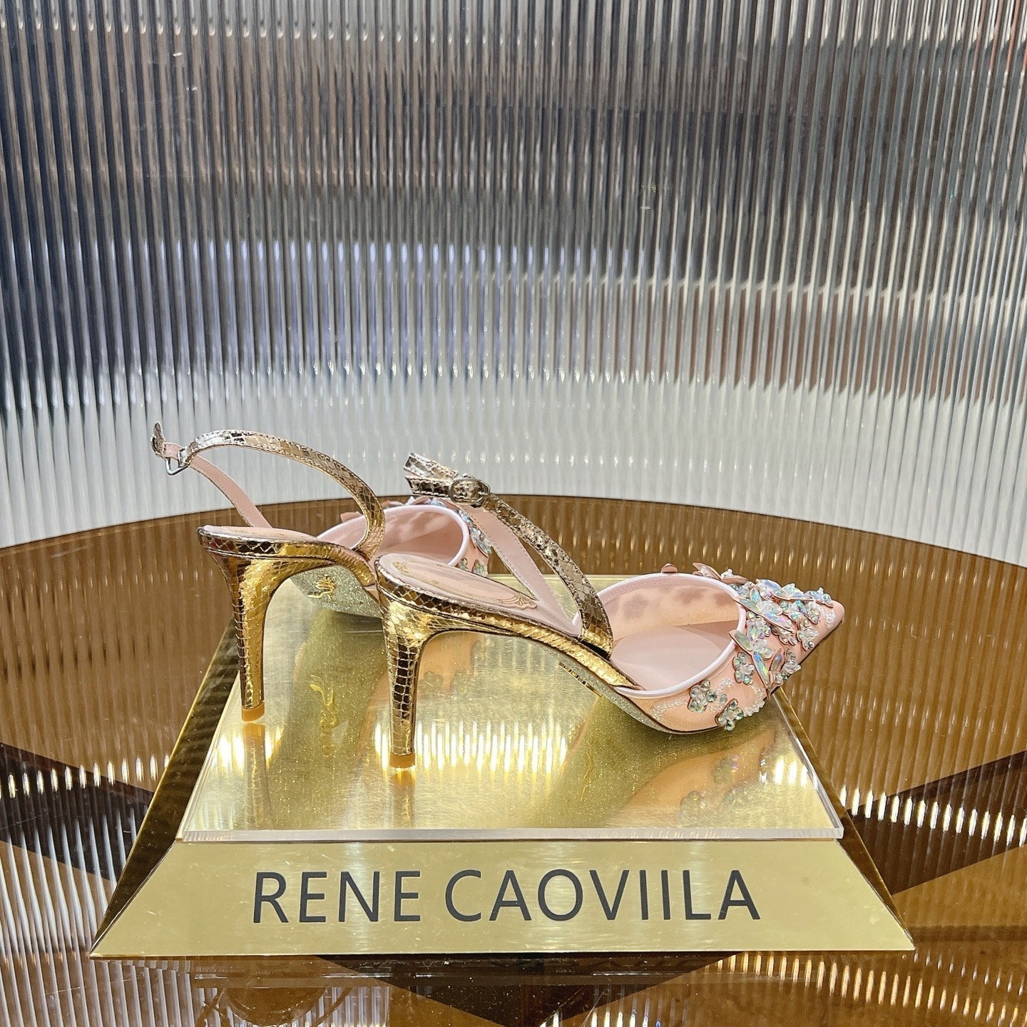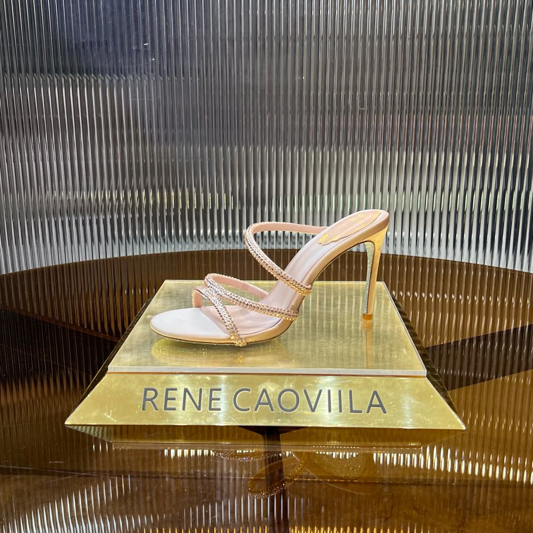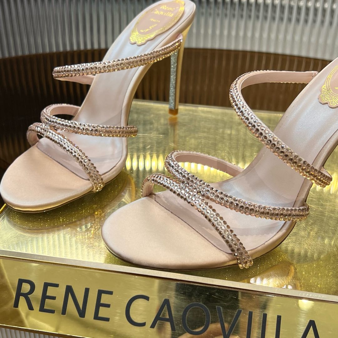 Rene Caovilla Chandelier Slider Sandal 75mm Gold Sheepskin