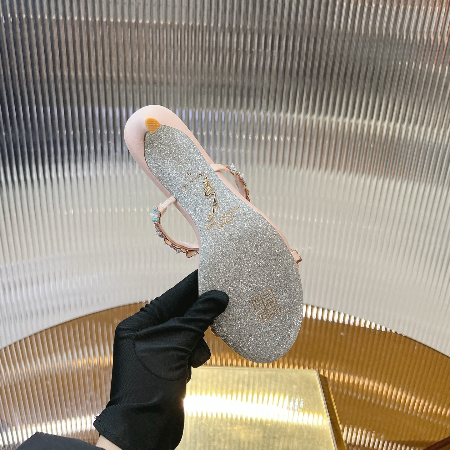 RC 25C Thong Diamond Flat Sandals Black Silk Rhinestone 275773