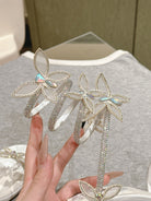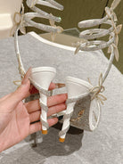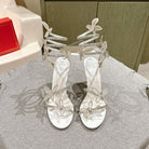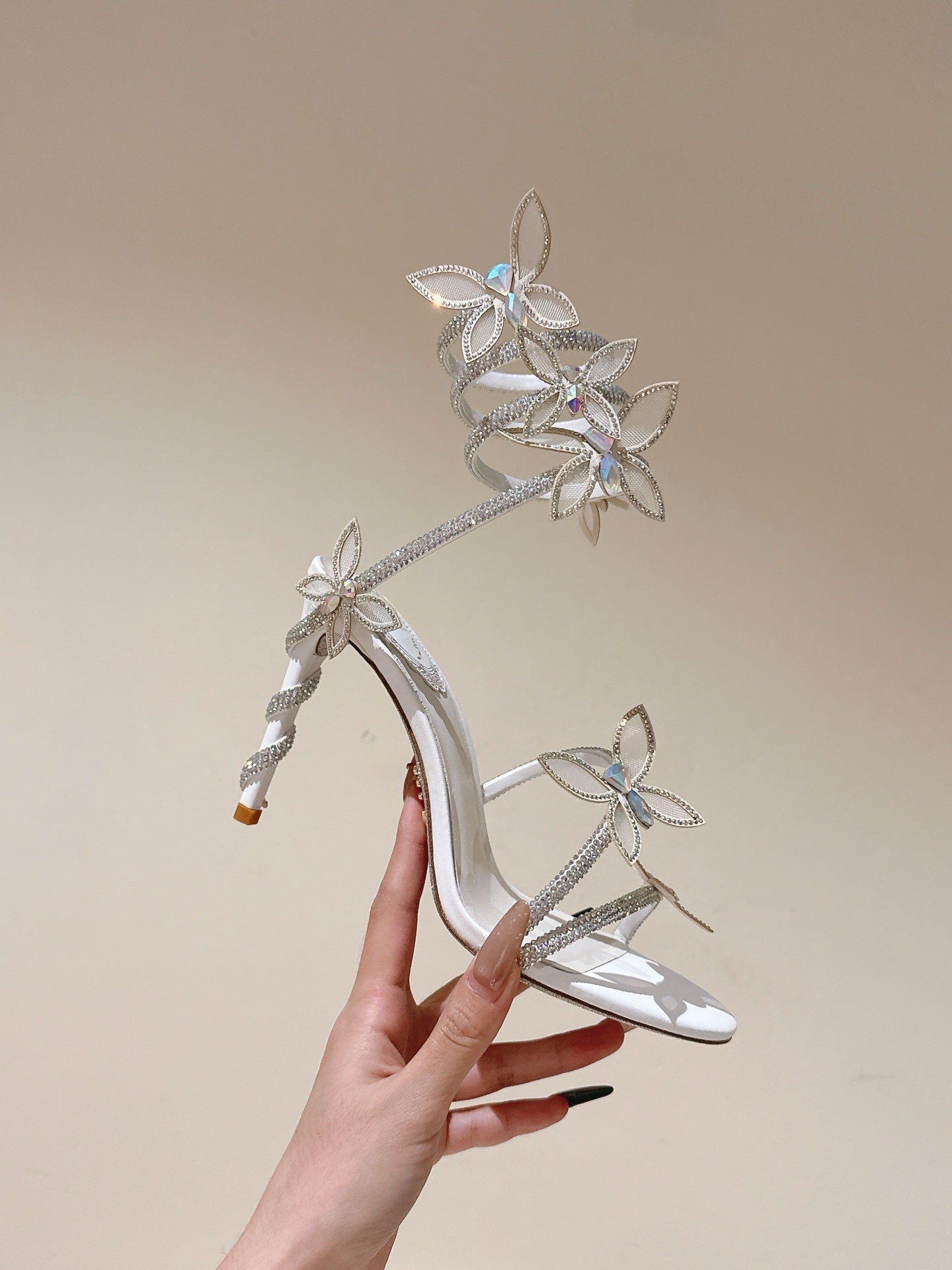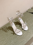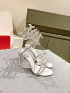 RC 25 Butterfly High-Heeled Sandals White Silk Rhinestones