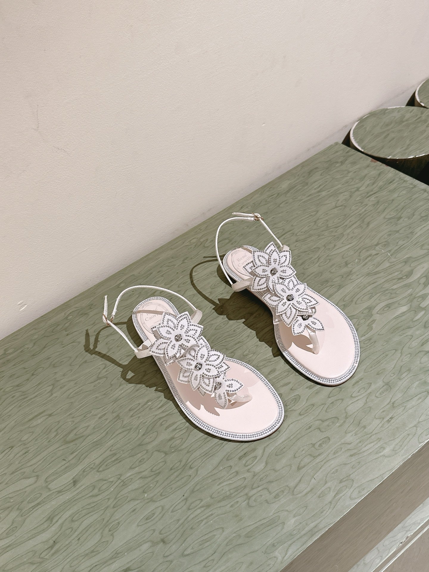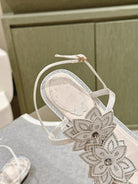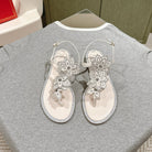 RC 25 Flat Sole Flower Thong White Silk Rhinestones 268063