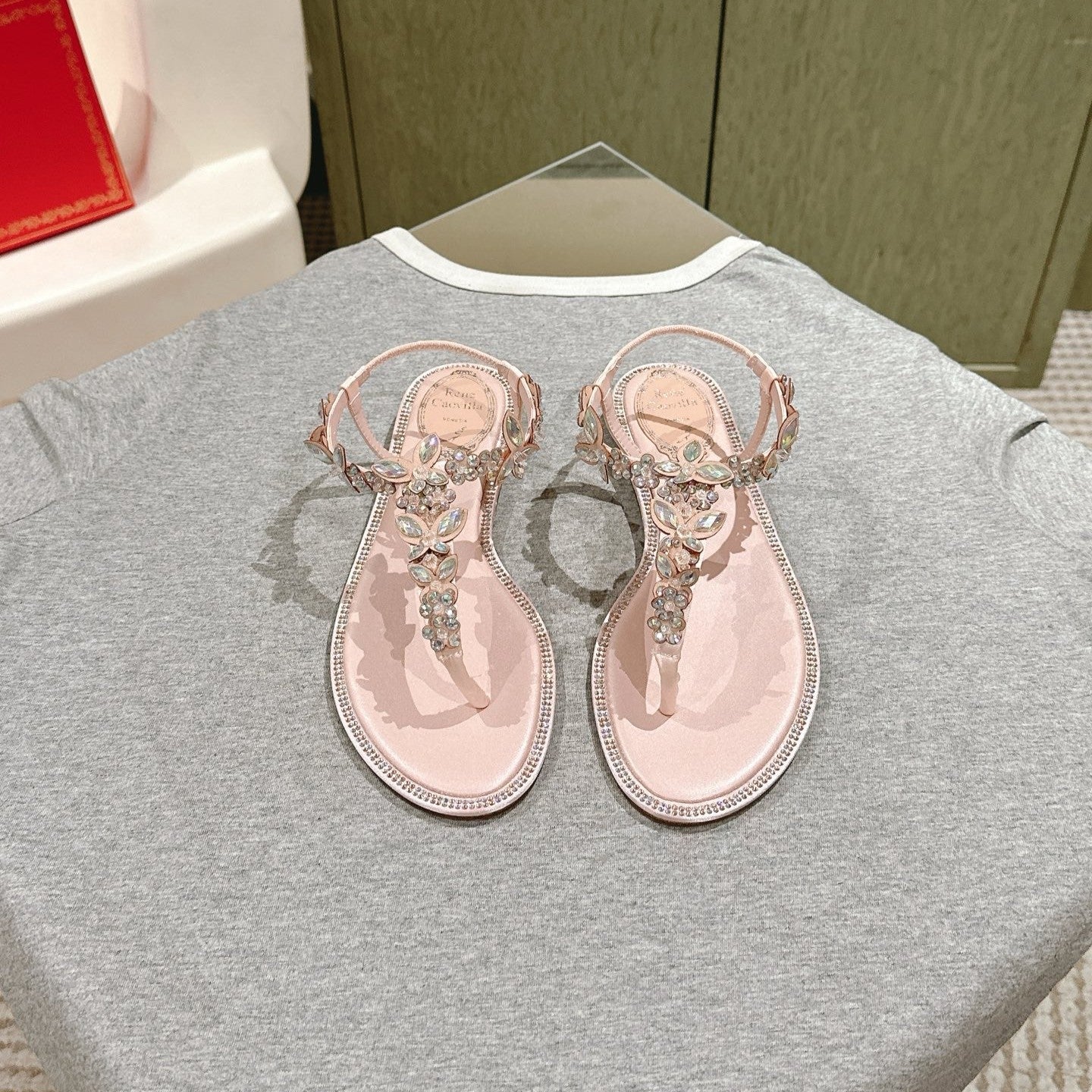 RC 25 Thong Snake-Shaped Popular Fairy Sandals Pink Silk Rhinestones 268064