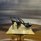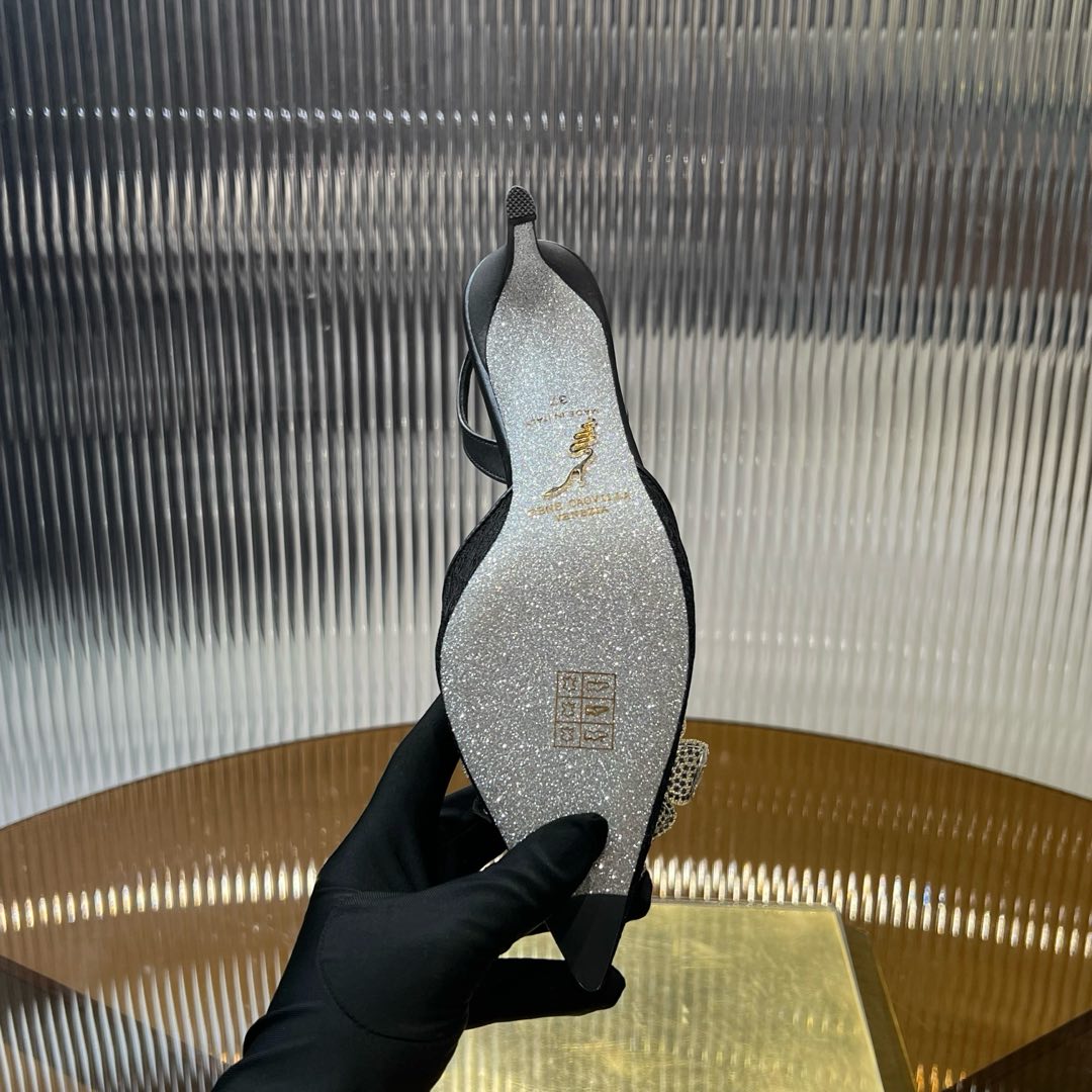 RC 25C Flower-Studded Diamond High-Heeled Sandals Black Sheepskin 174909