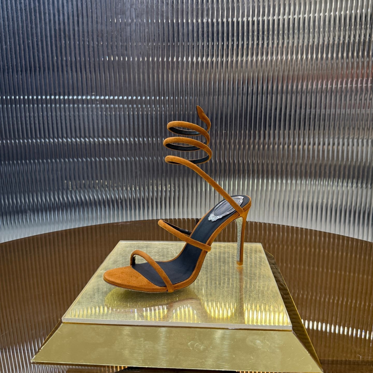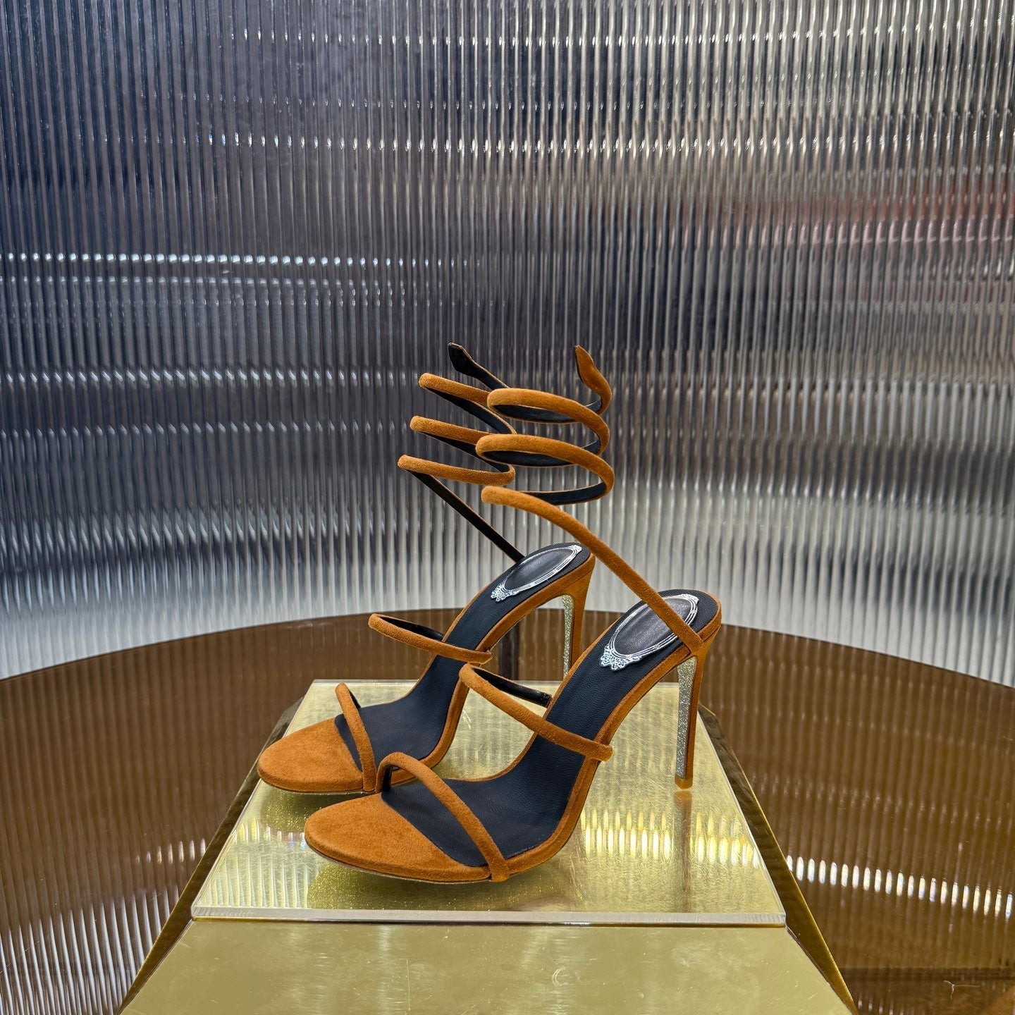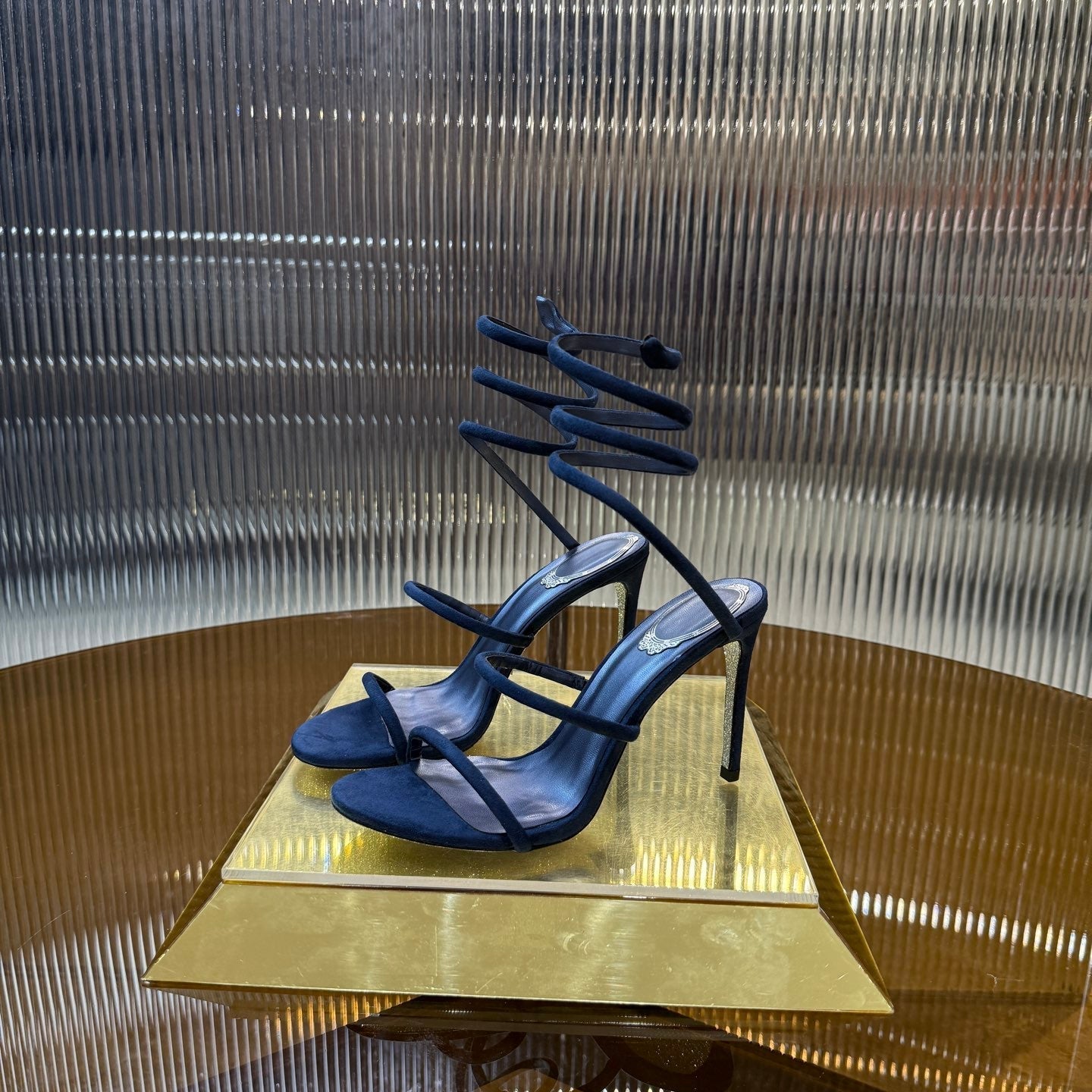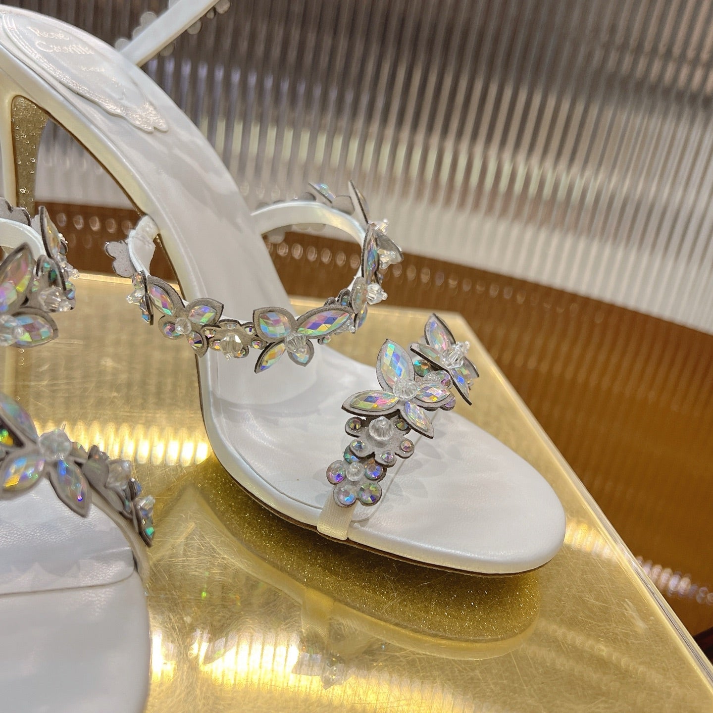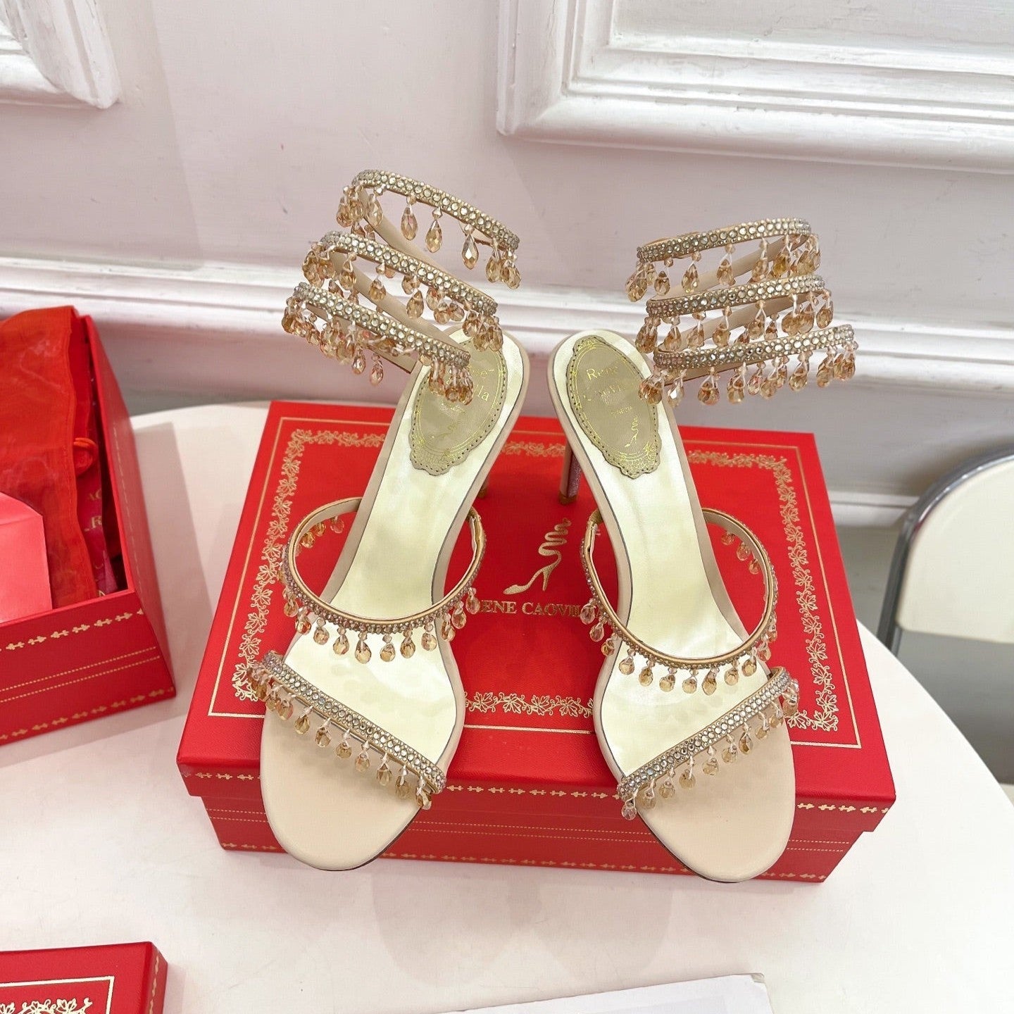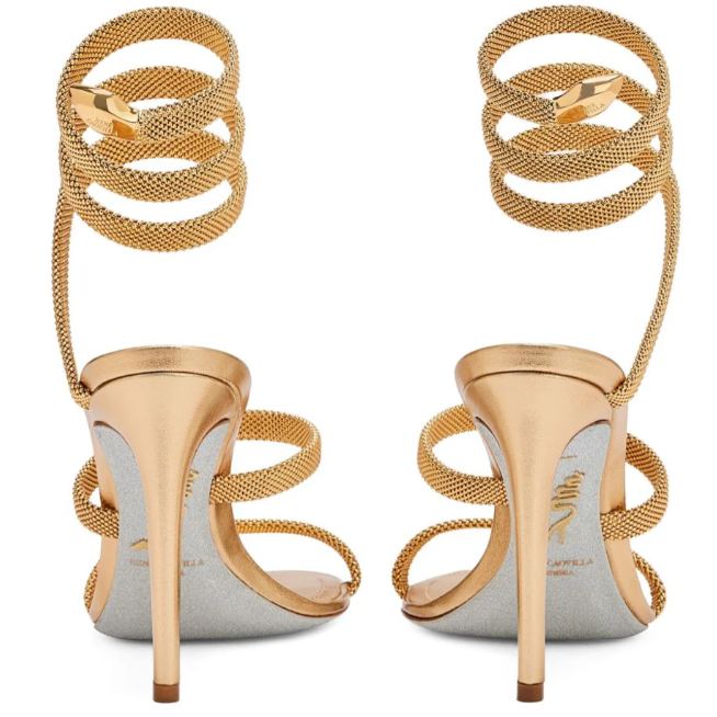 RC 25C High Heel Short Boots Mid-Tube Open-Toe Sandals Gold Sheepskin 174957
