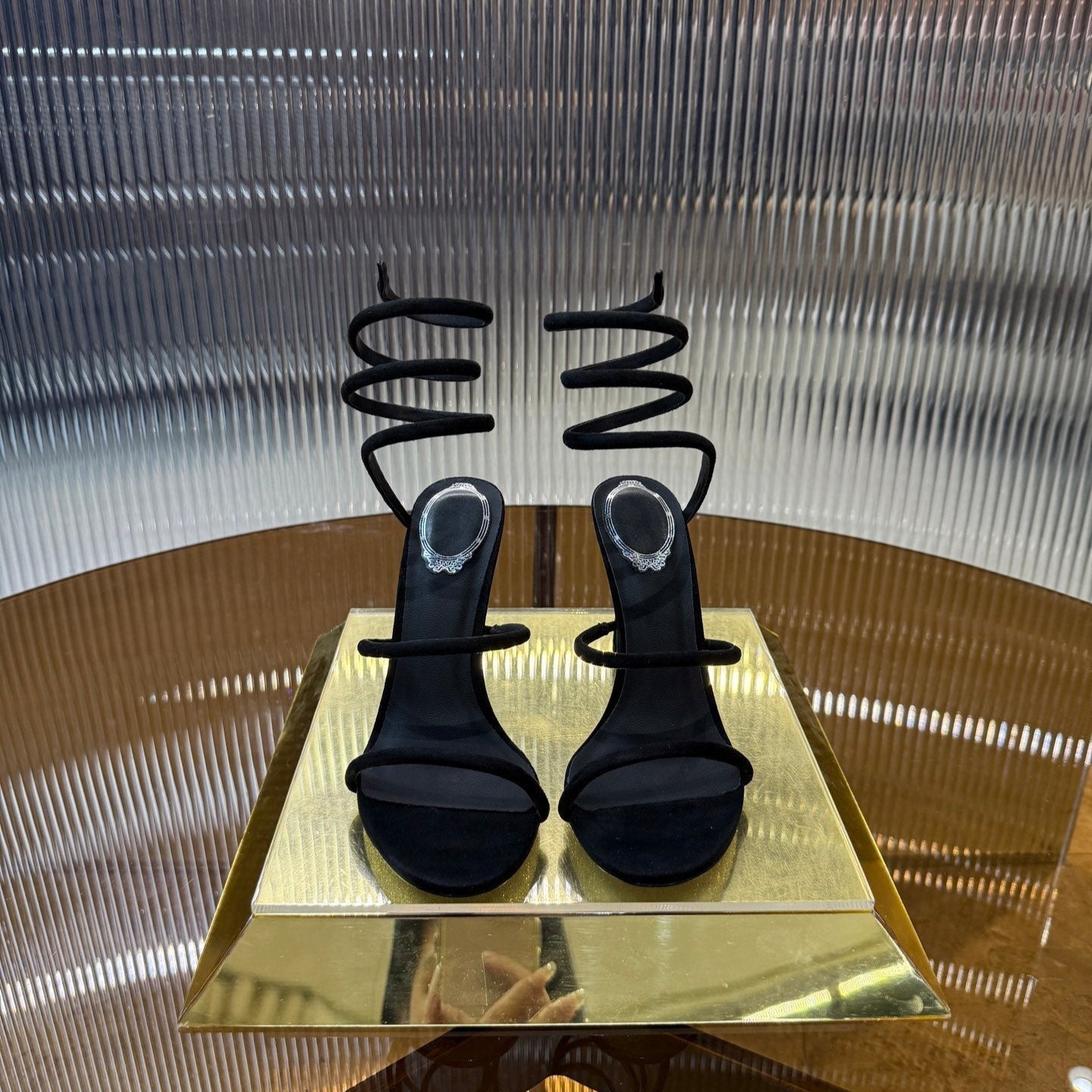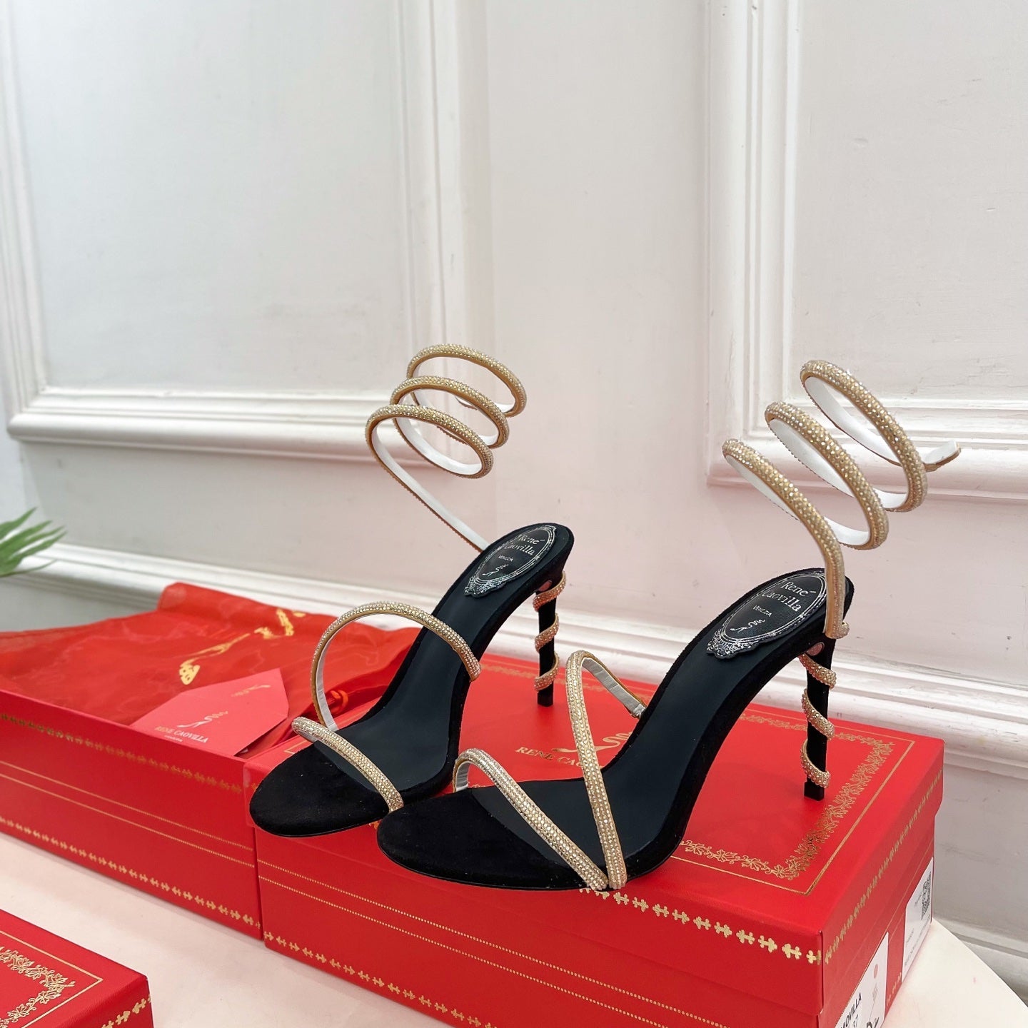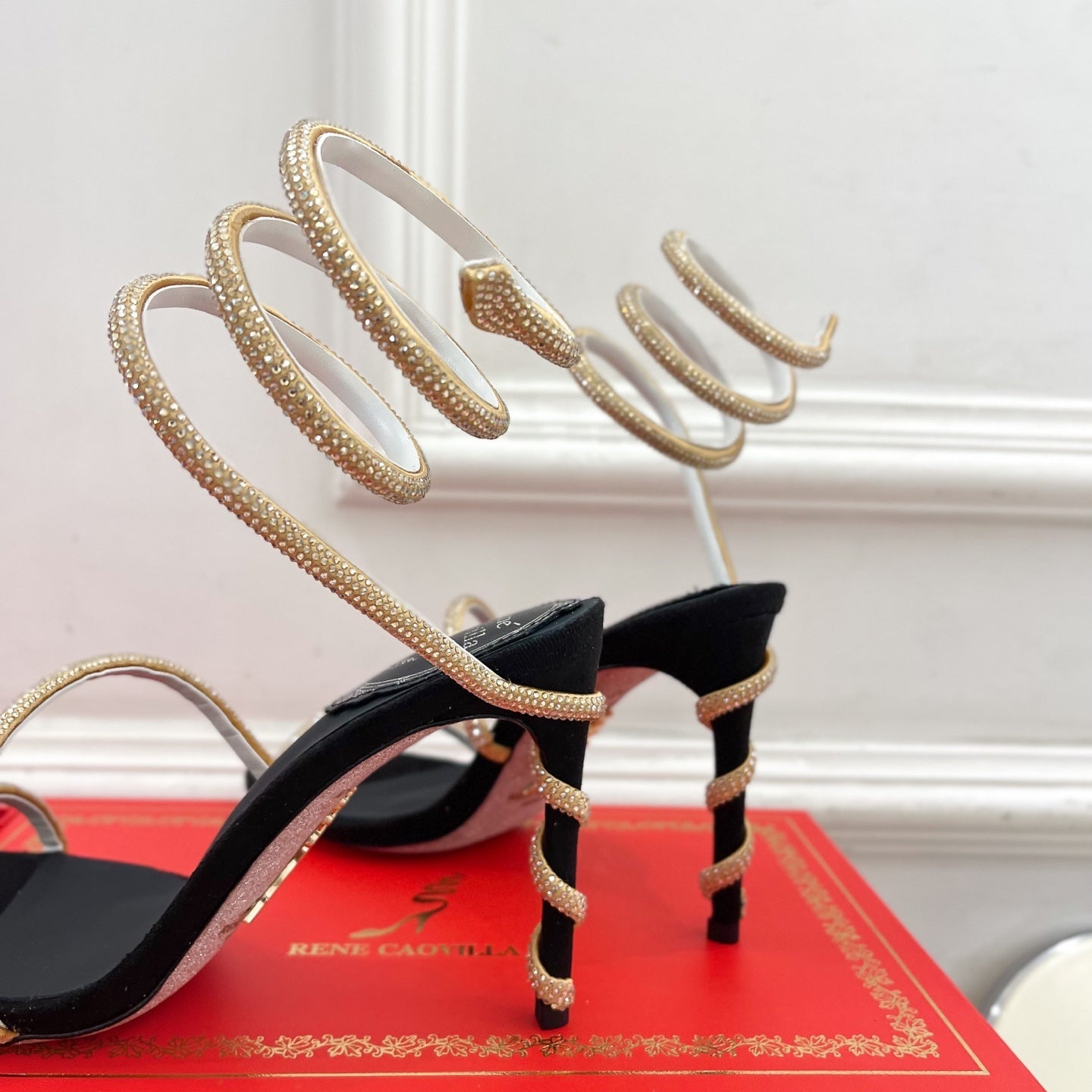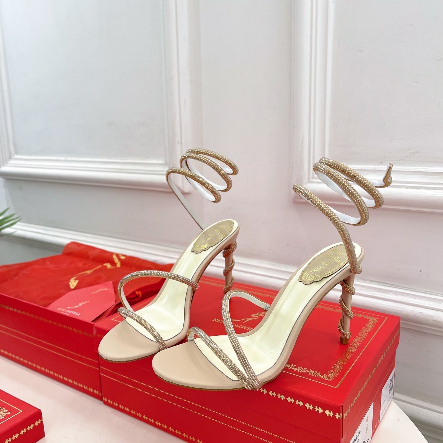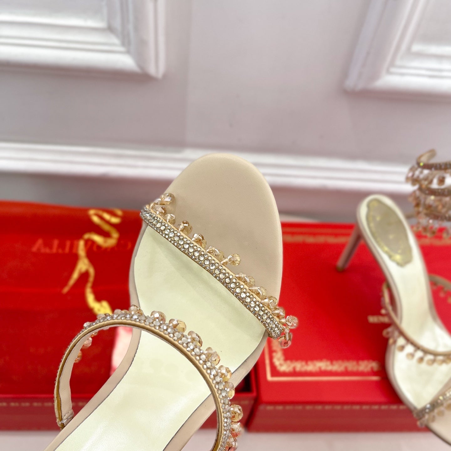 RC 25C High Heel Short Boots Mid-Tube Open-Toe Sandals Gold Sheepskin 174957