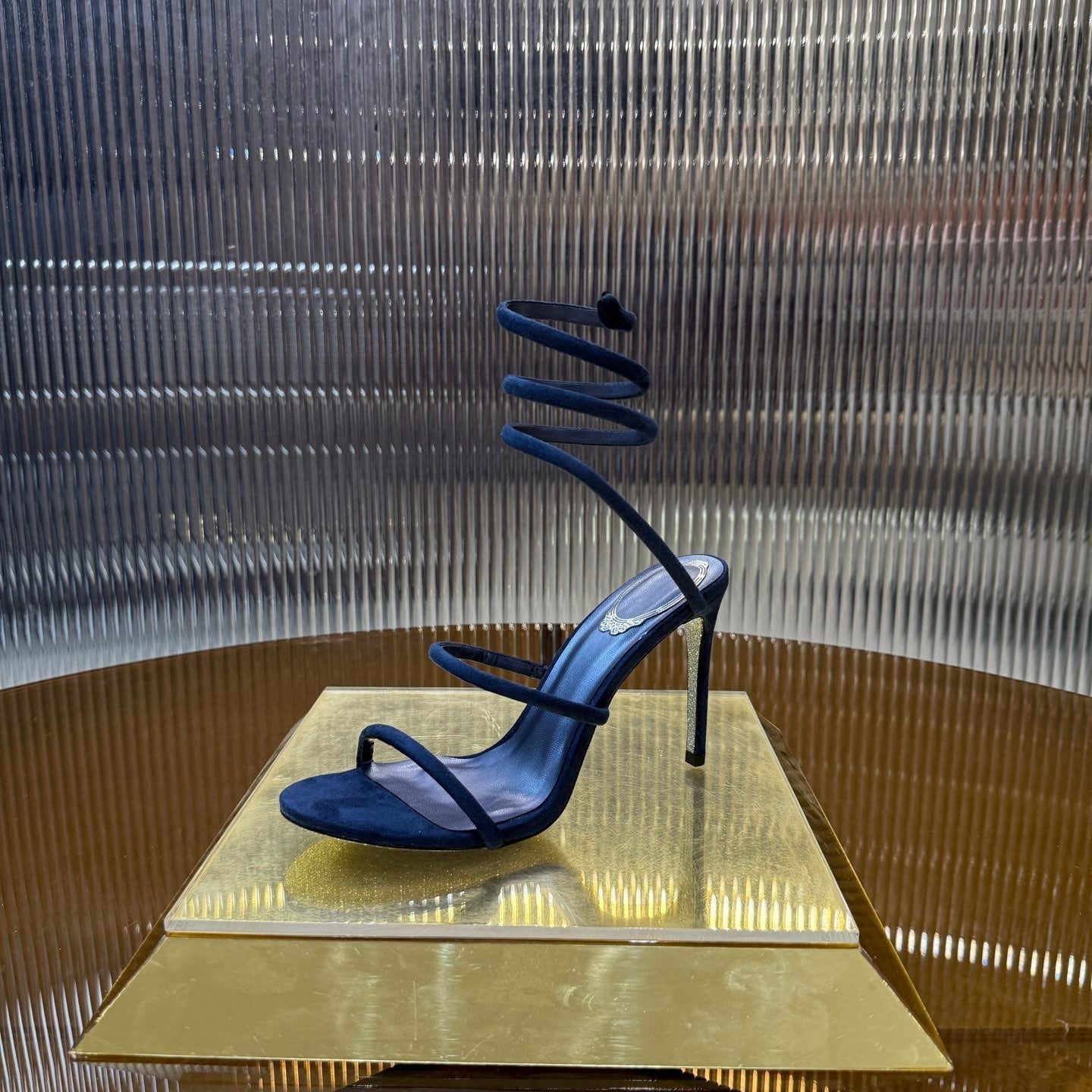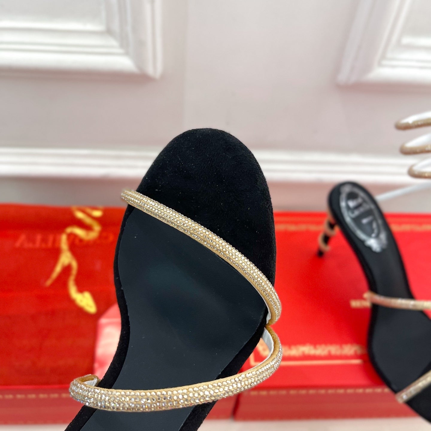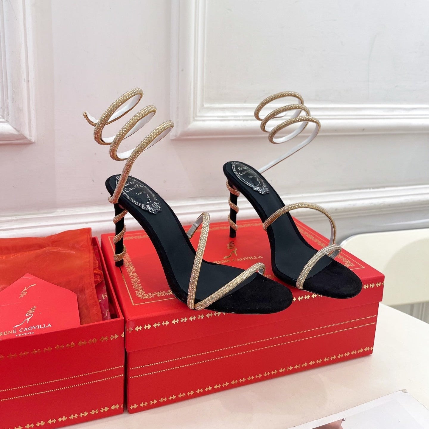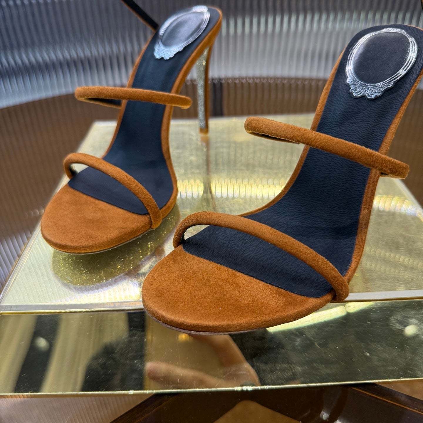 RC 25C High Heel Short Boots Mid-Tube Open-Toe Sandals Gold Sheepskin 174957