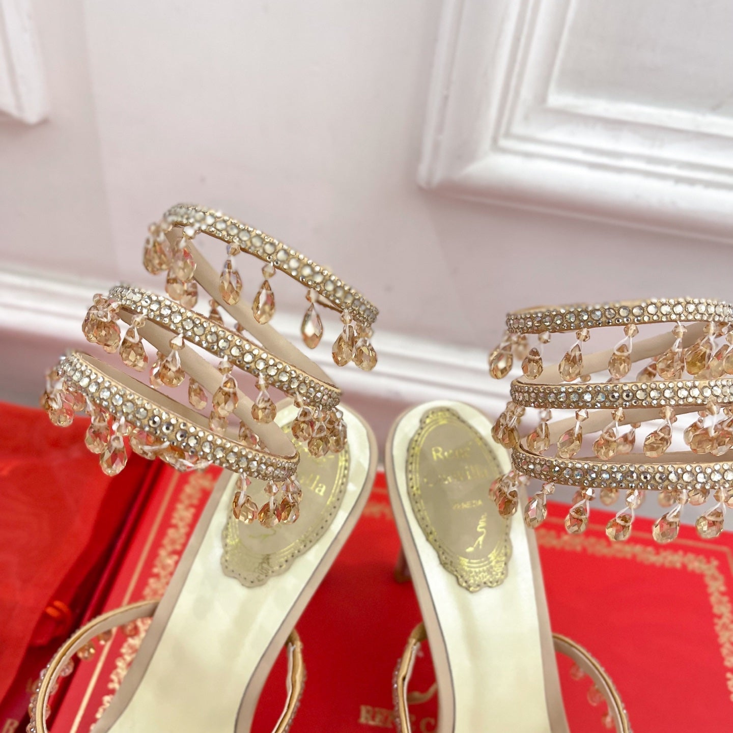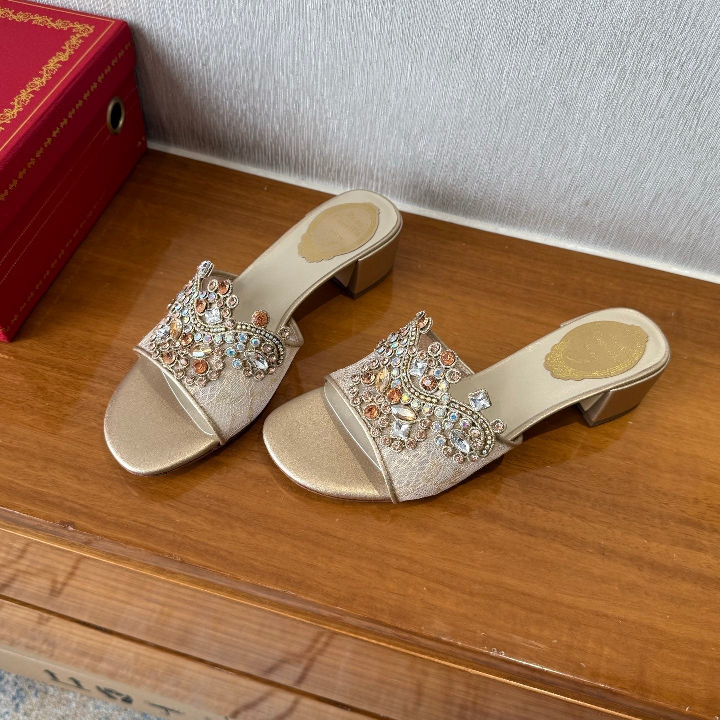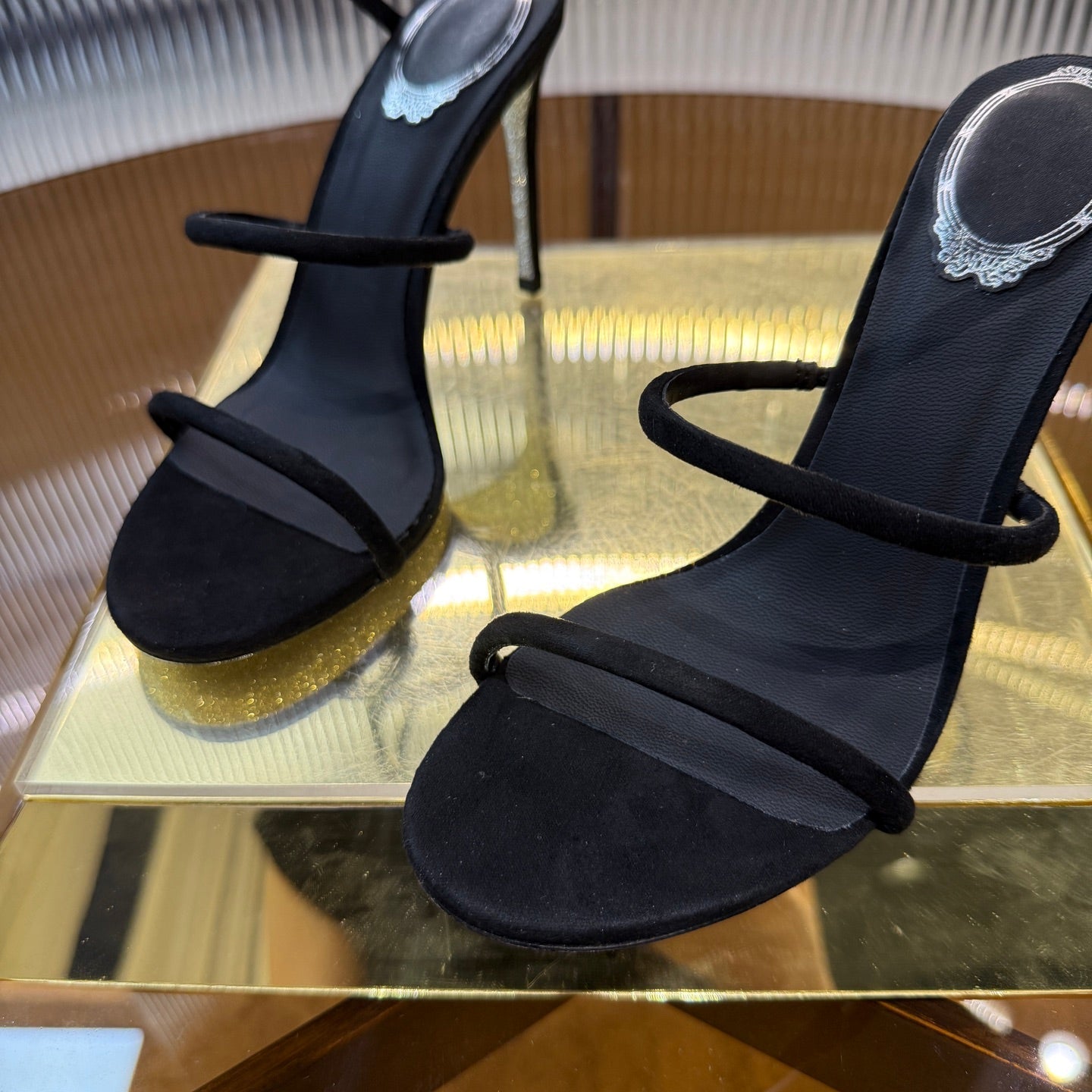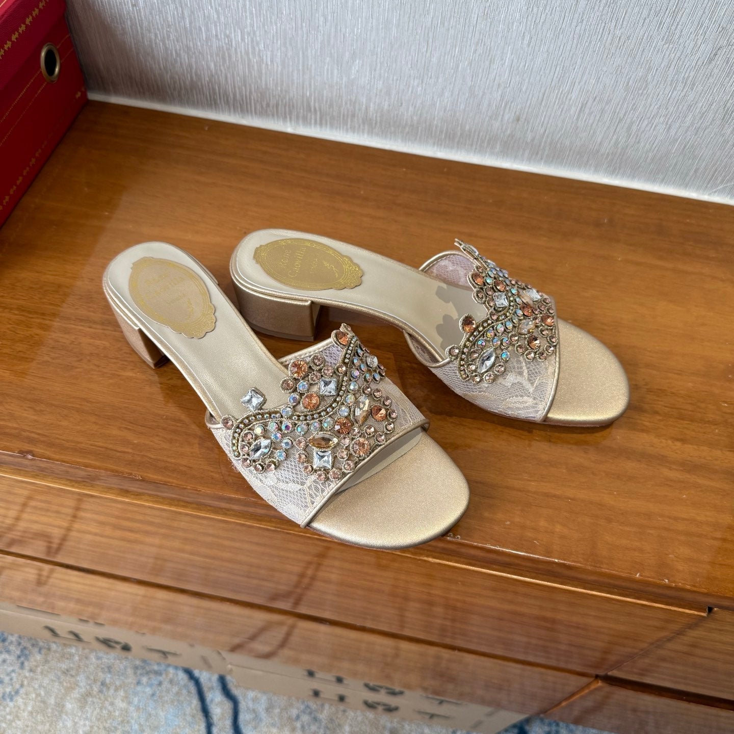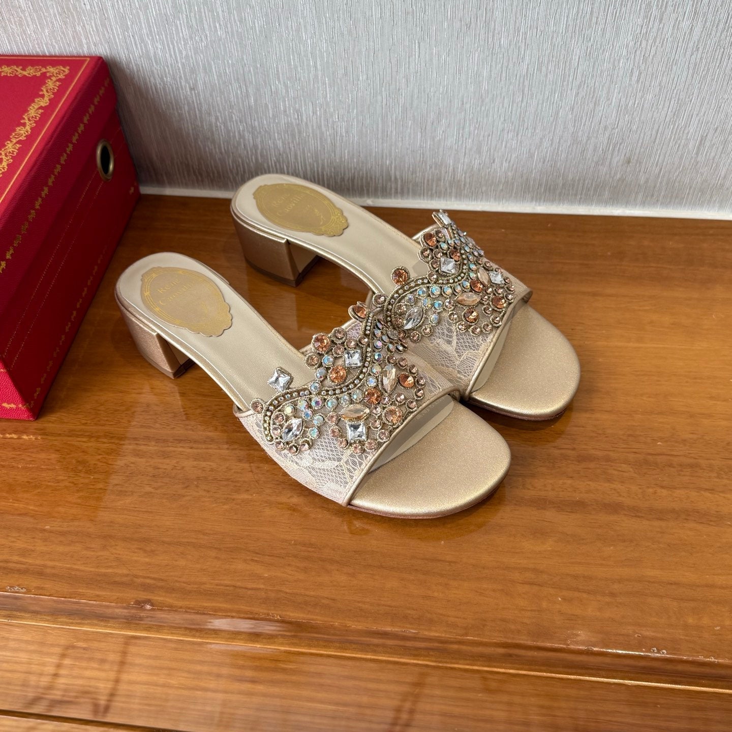 RC 25C High Heel Short Boots Mid-Tube Open-Toe Sandals Gold Sheepskin 174957