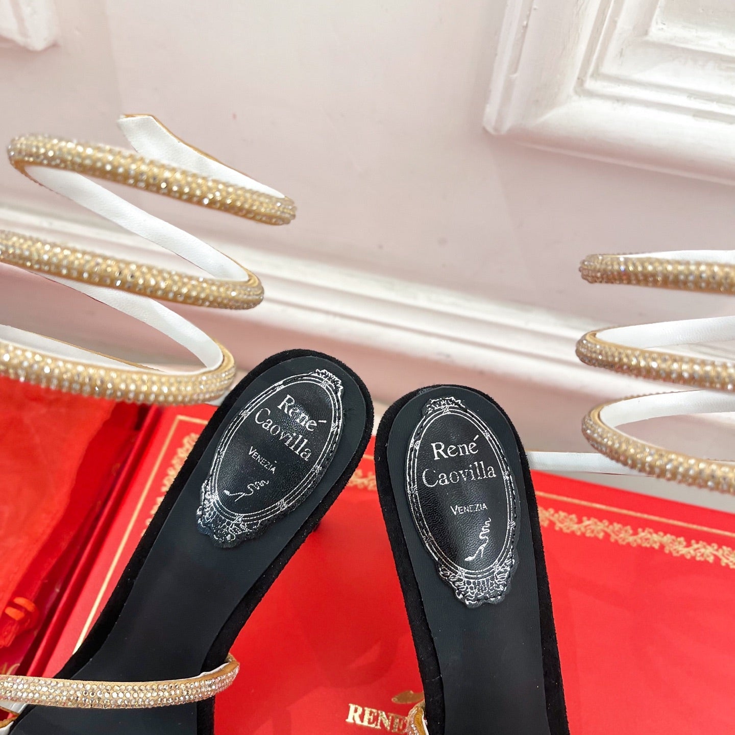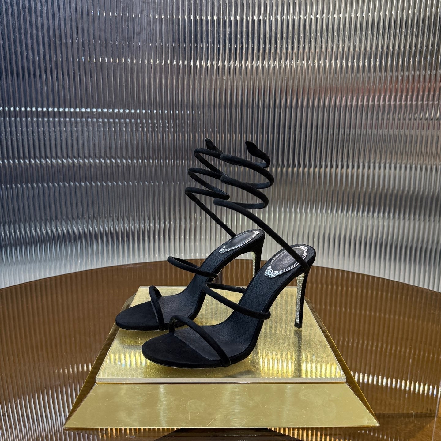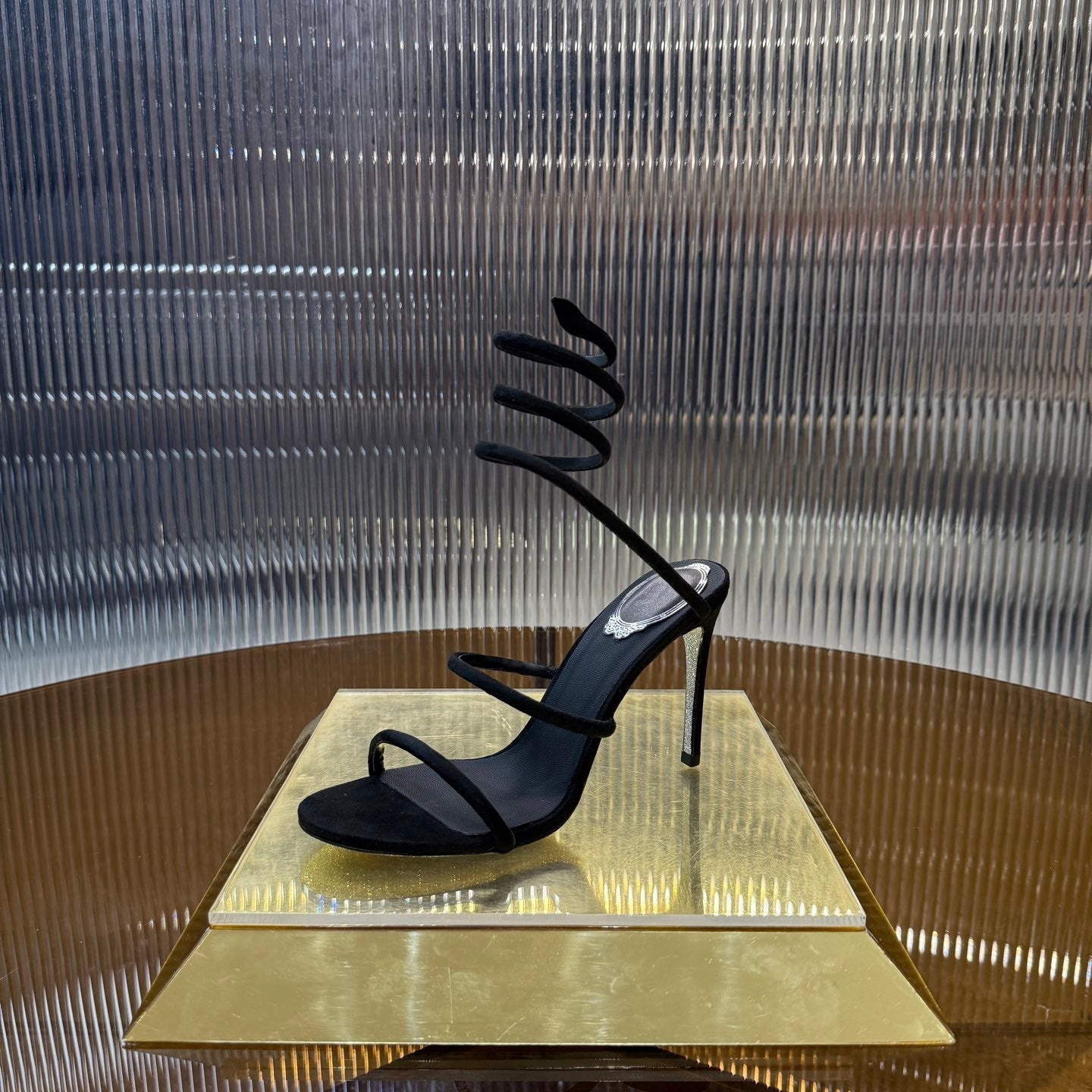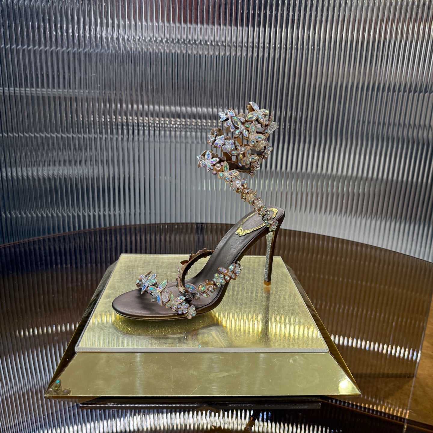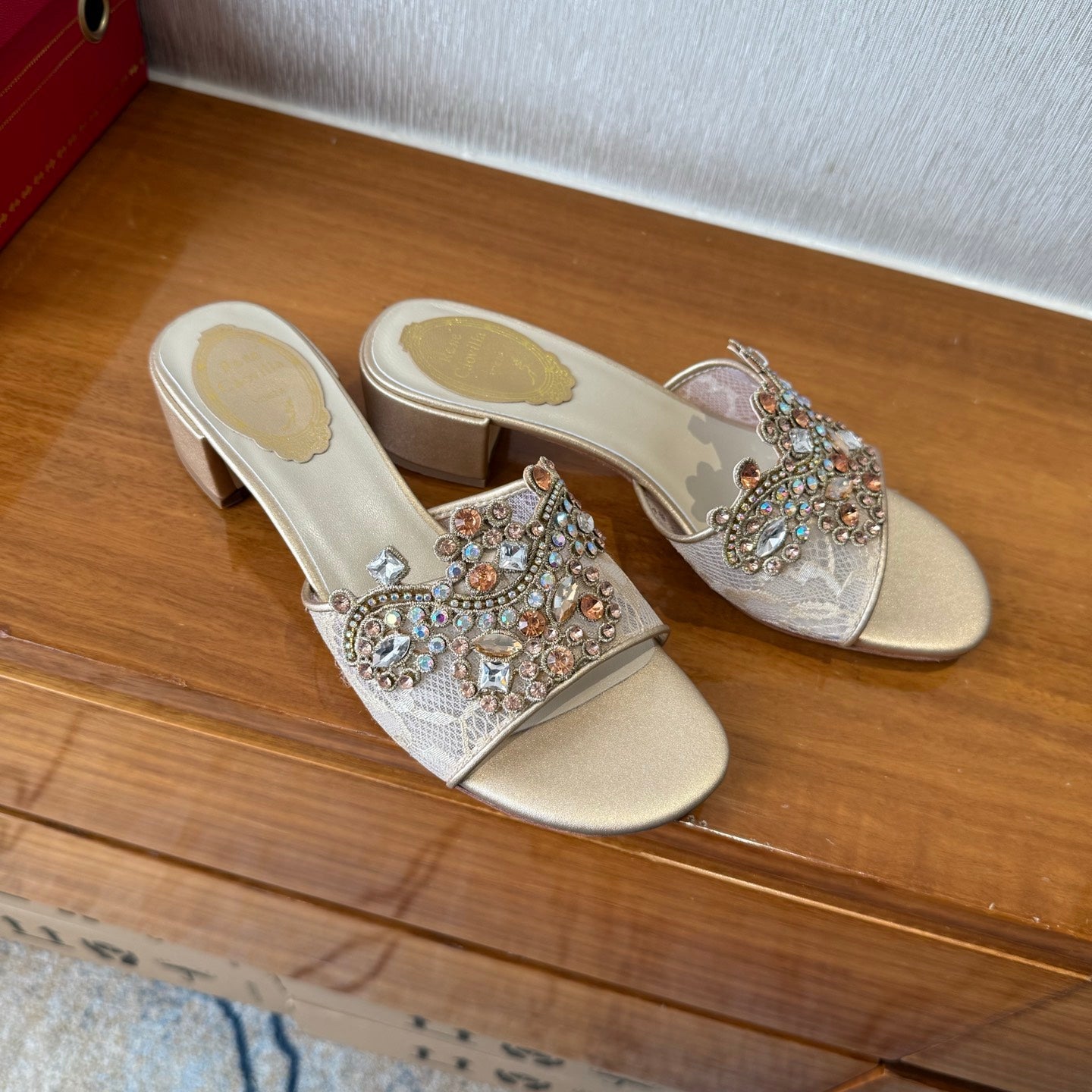 RC 25C High Heel Short Boots Mid-Tube Open-Toe Sandals Gold Sheepskin 174957
