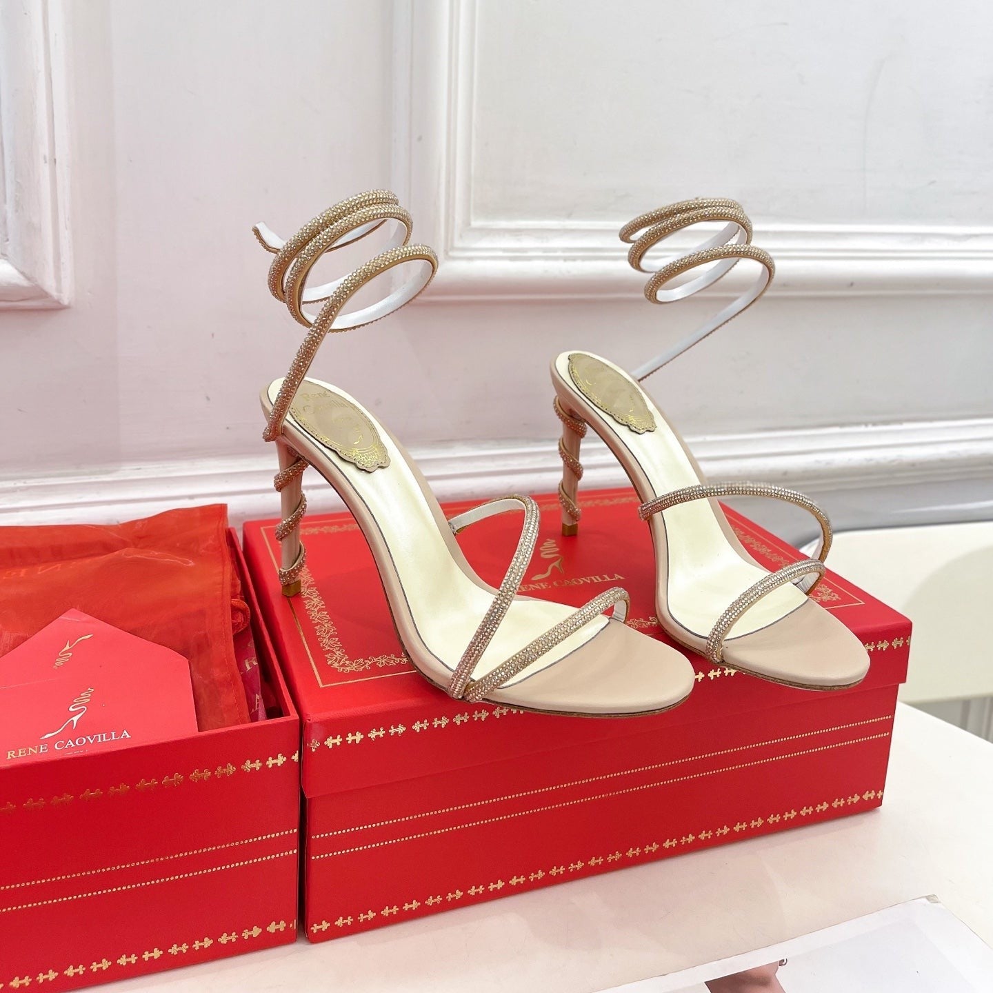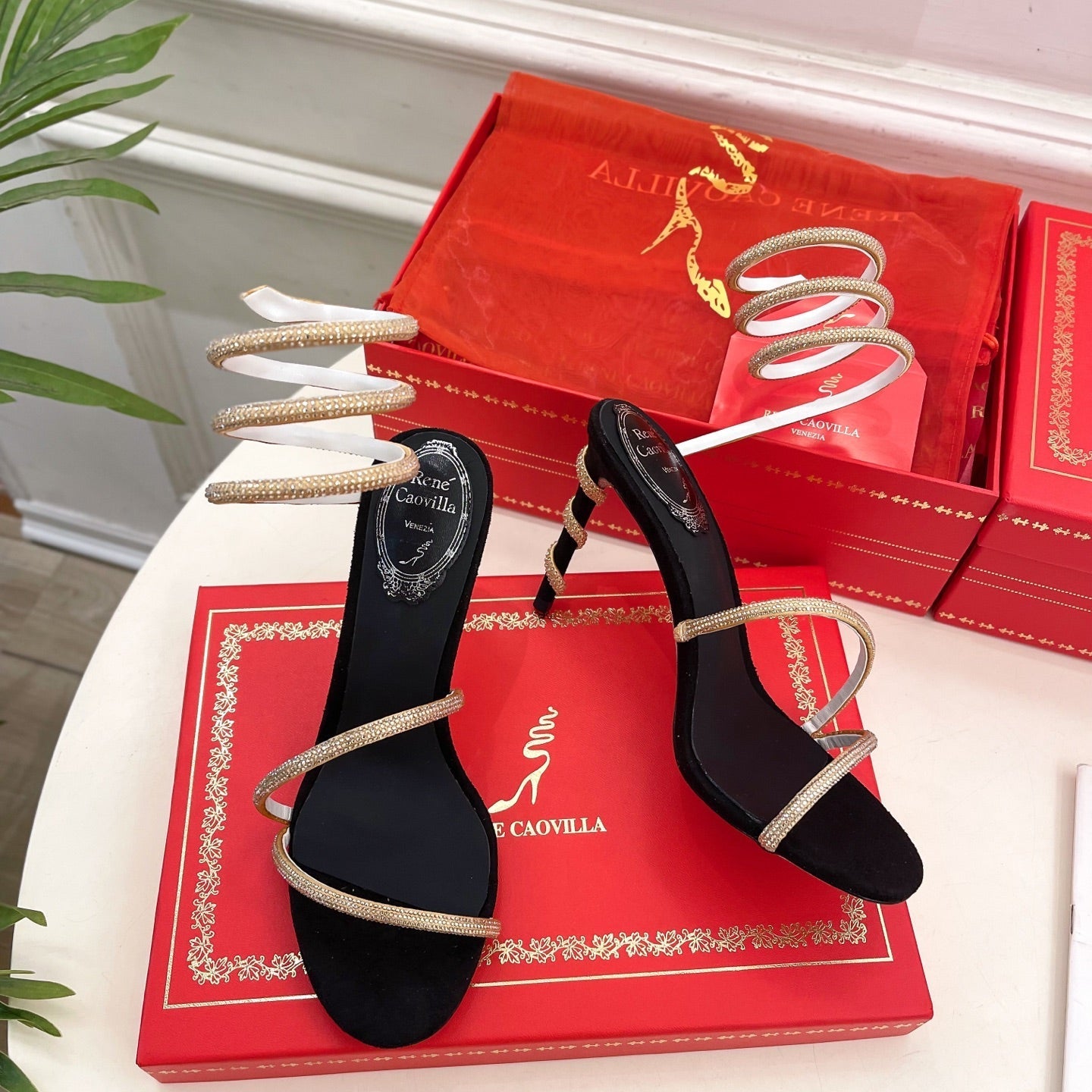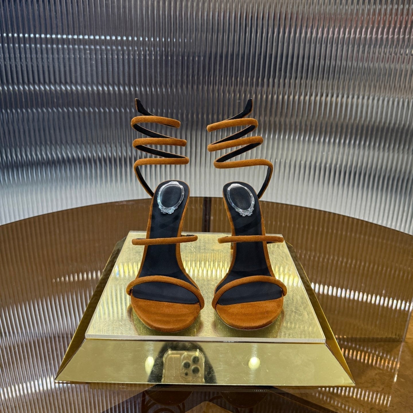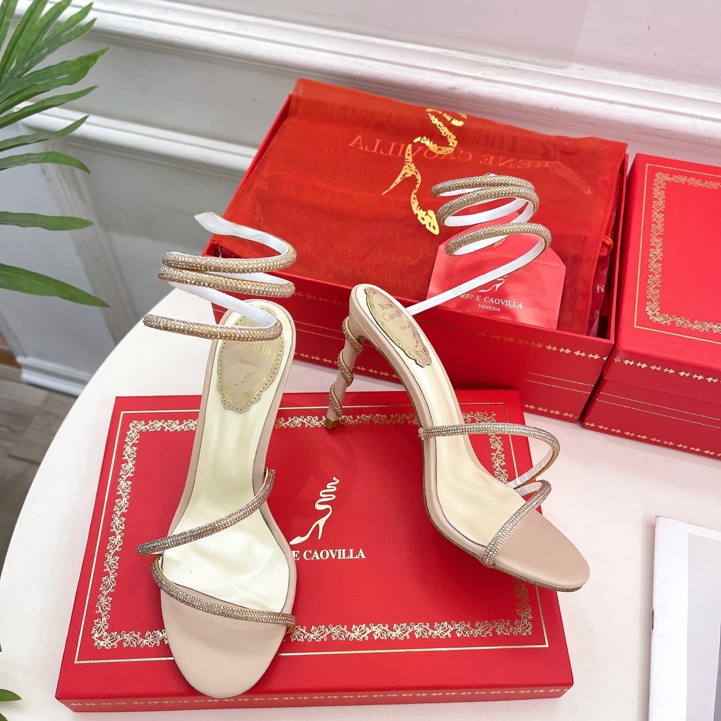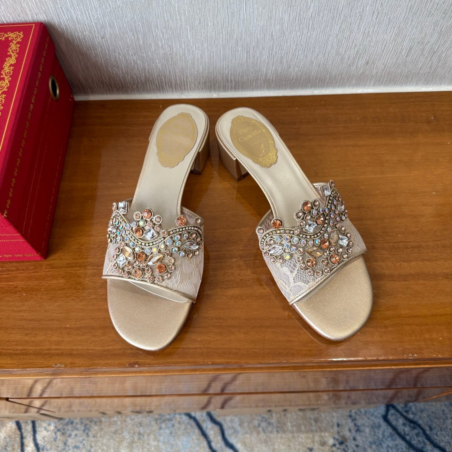 RC 25C High Heel Short Boots Mid-Tube Open-Toe Sandals Gold Sheepskin 174957