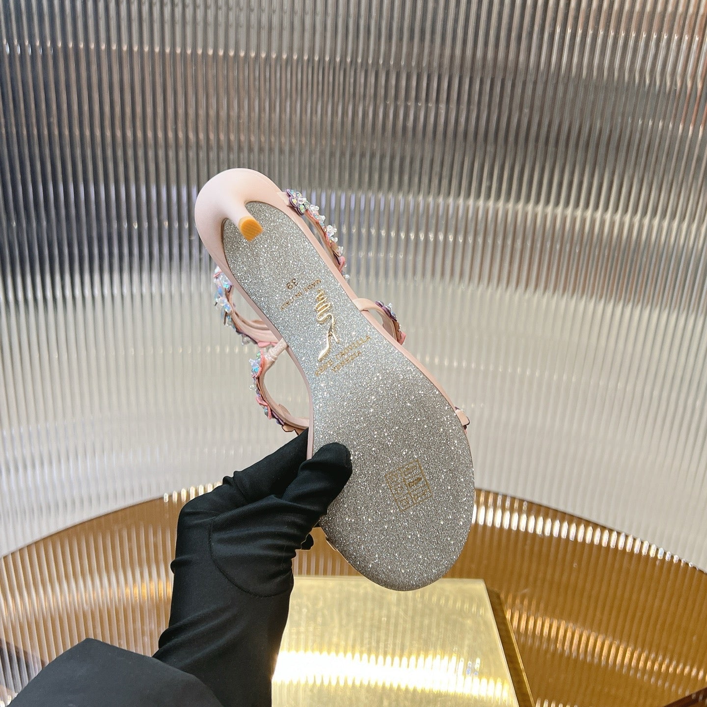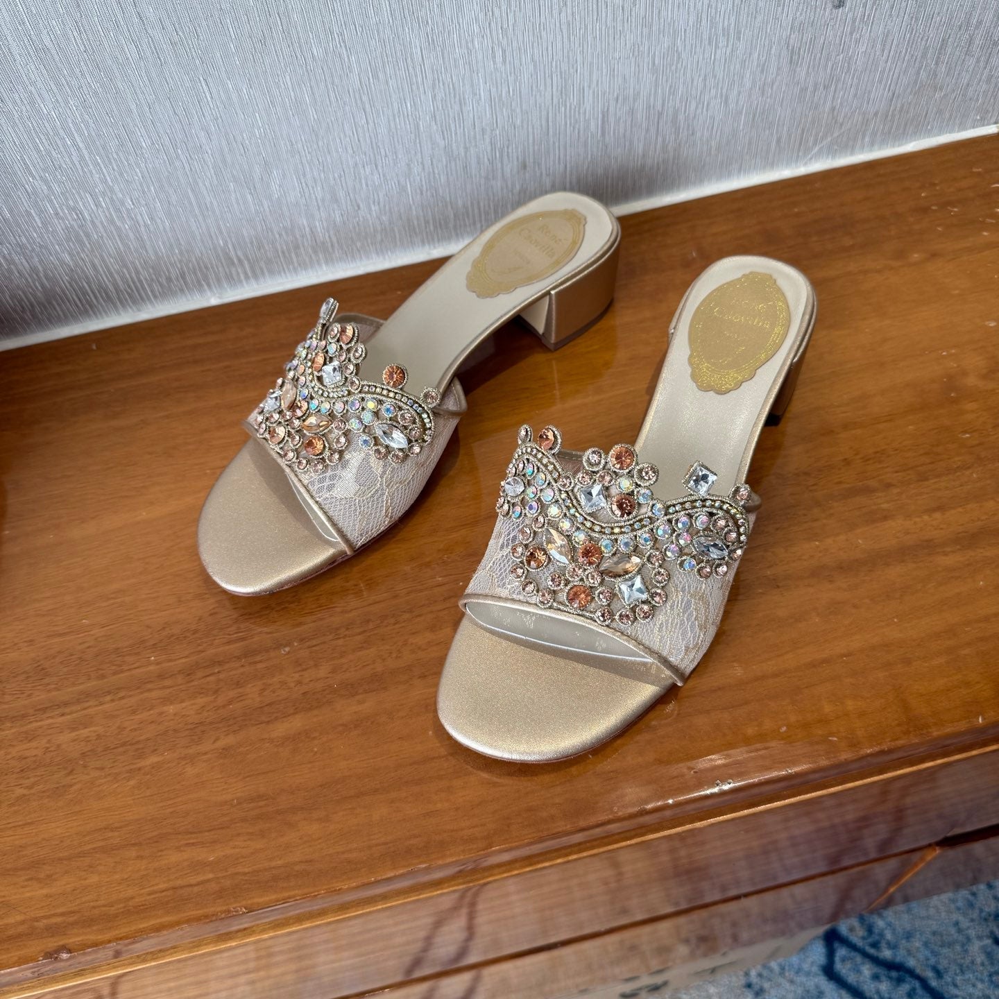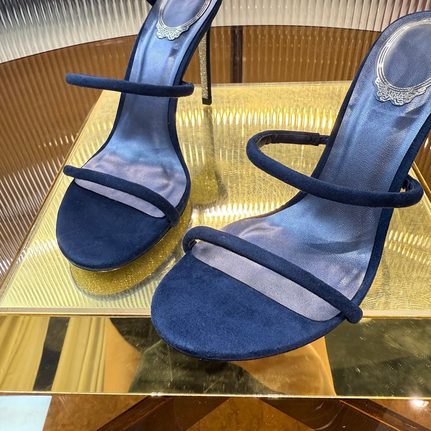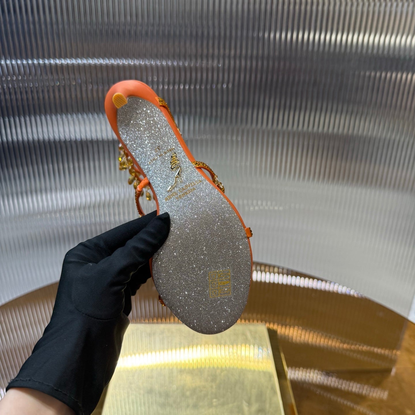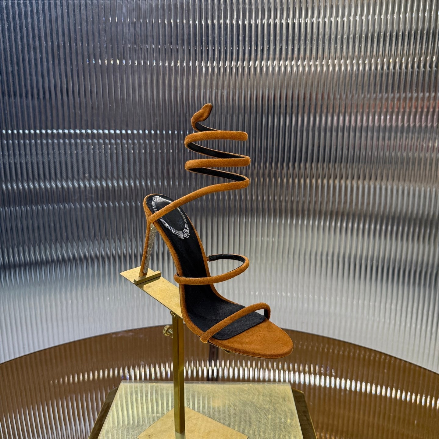 RC 25C High Heel Short Boots Mid-Tube Open-Toe Sandals Gold Sheepskin 174957