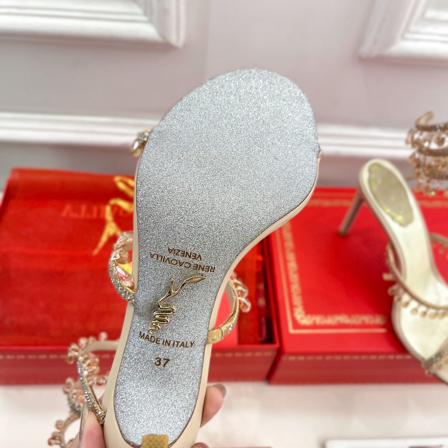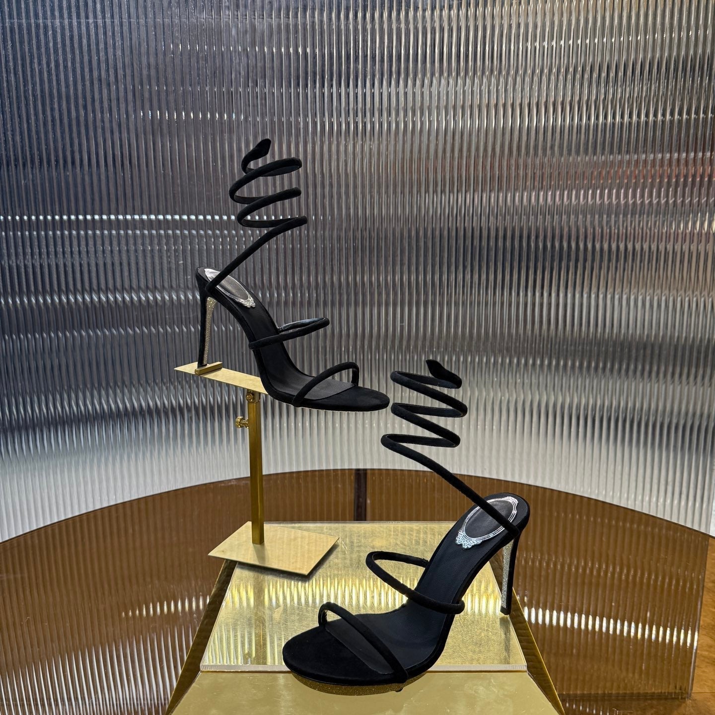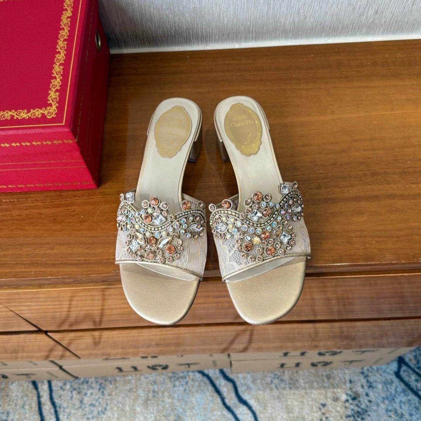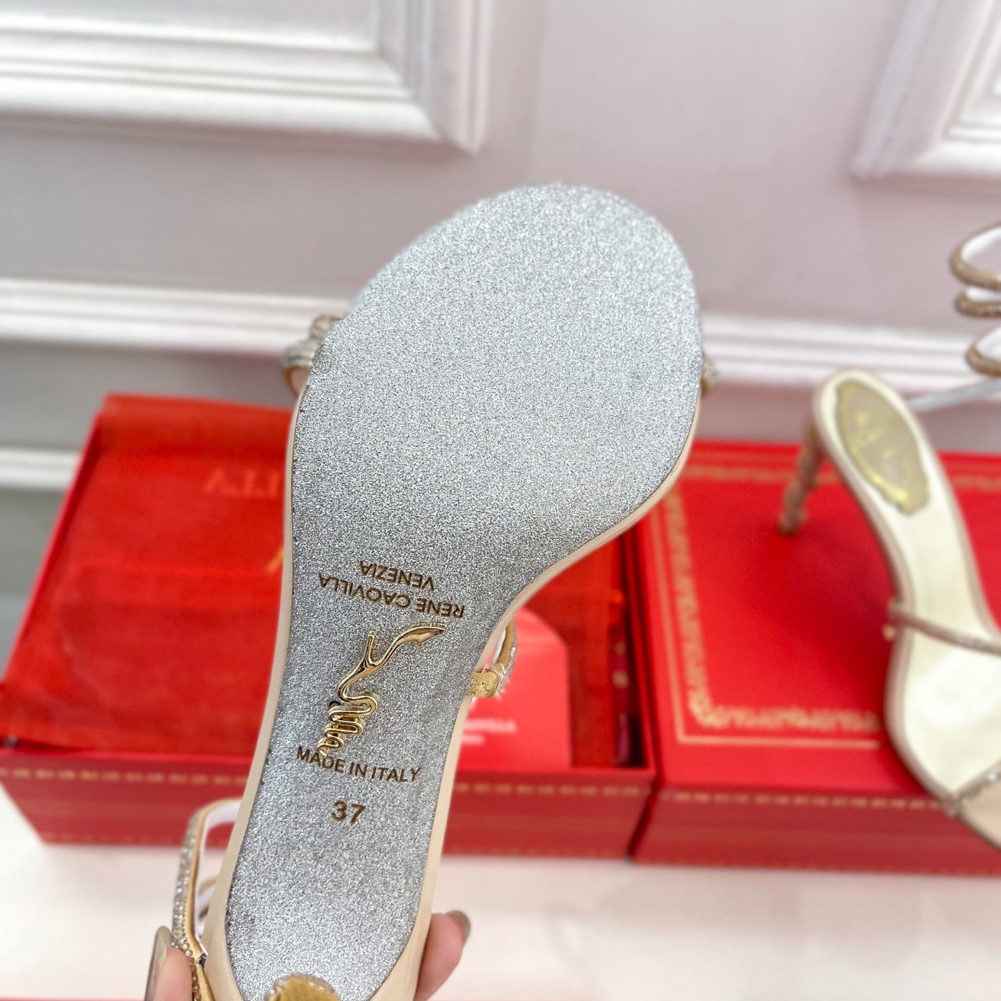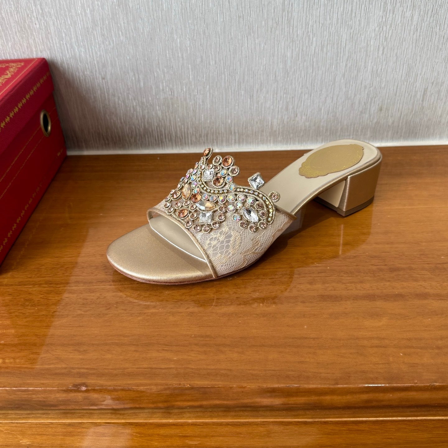 RC 25C High Heel Short Boots Mid-Tube Open-Toe Sandals Gold Sheepskin 174957
