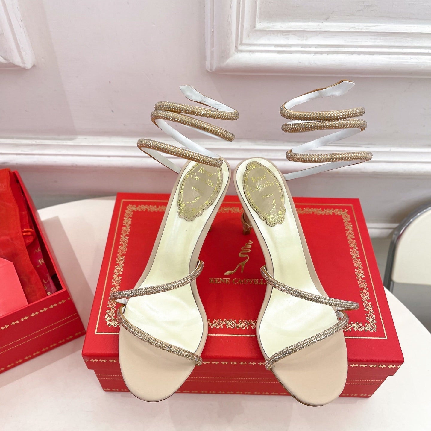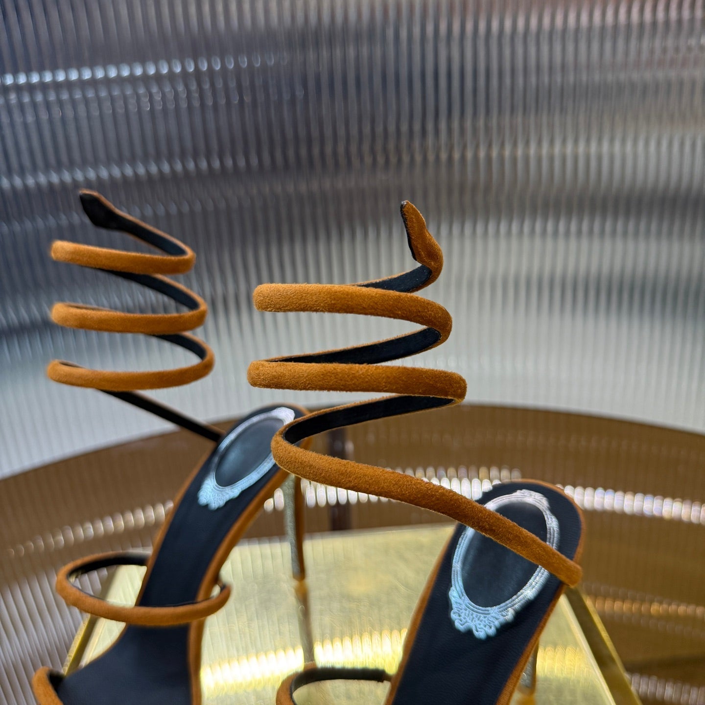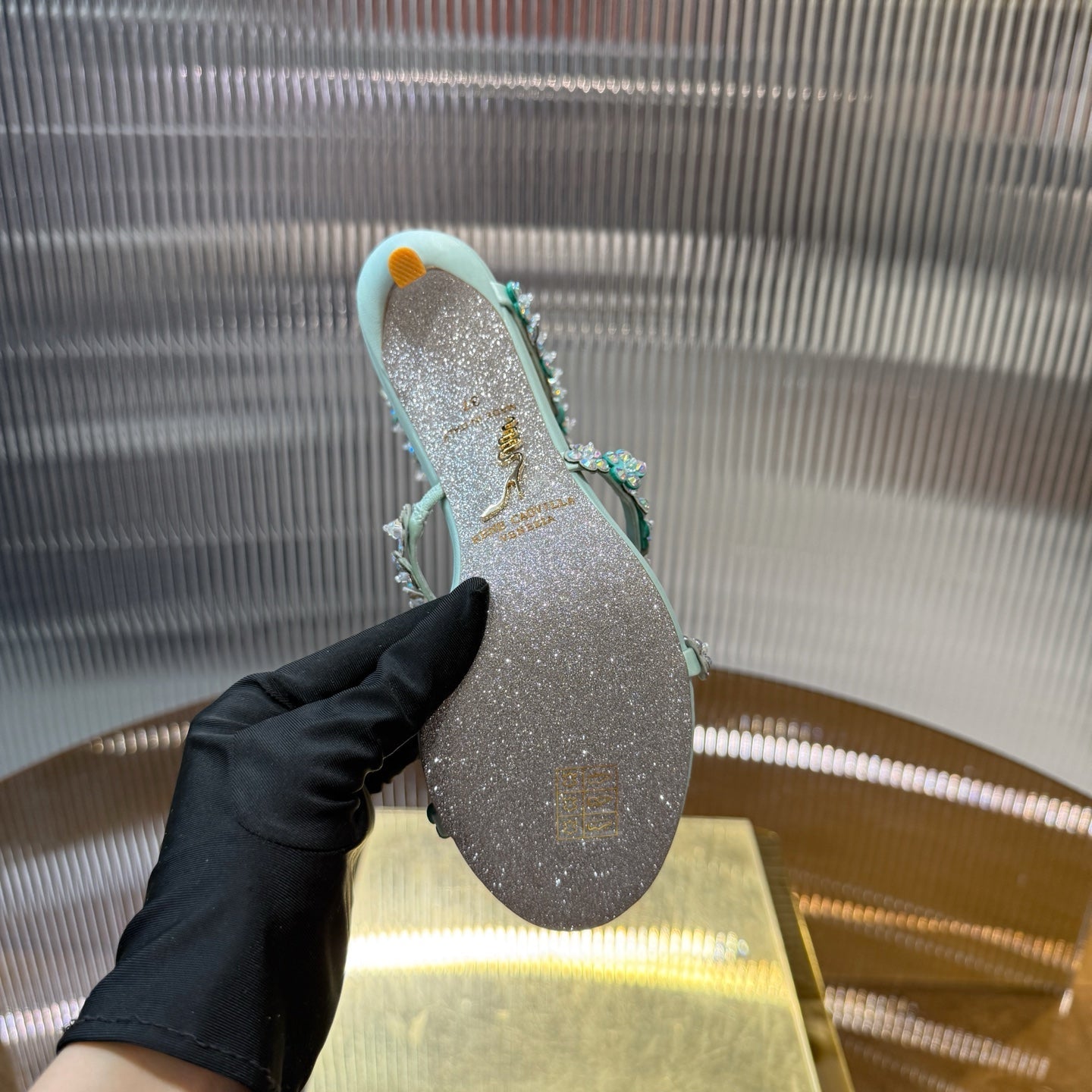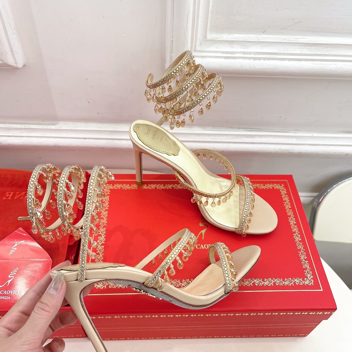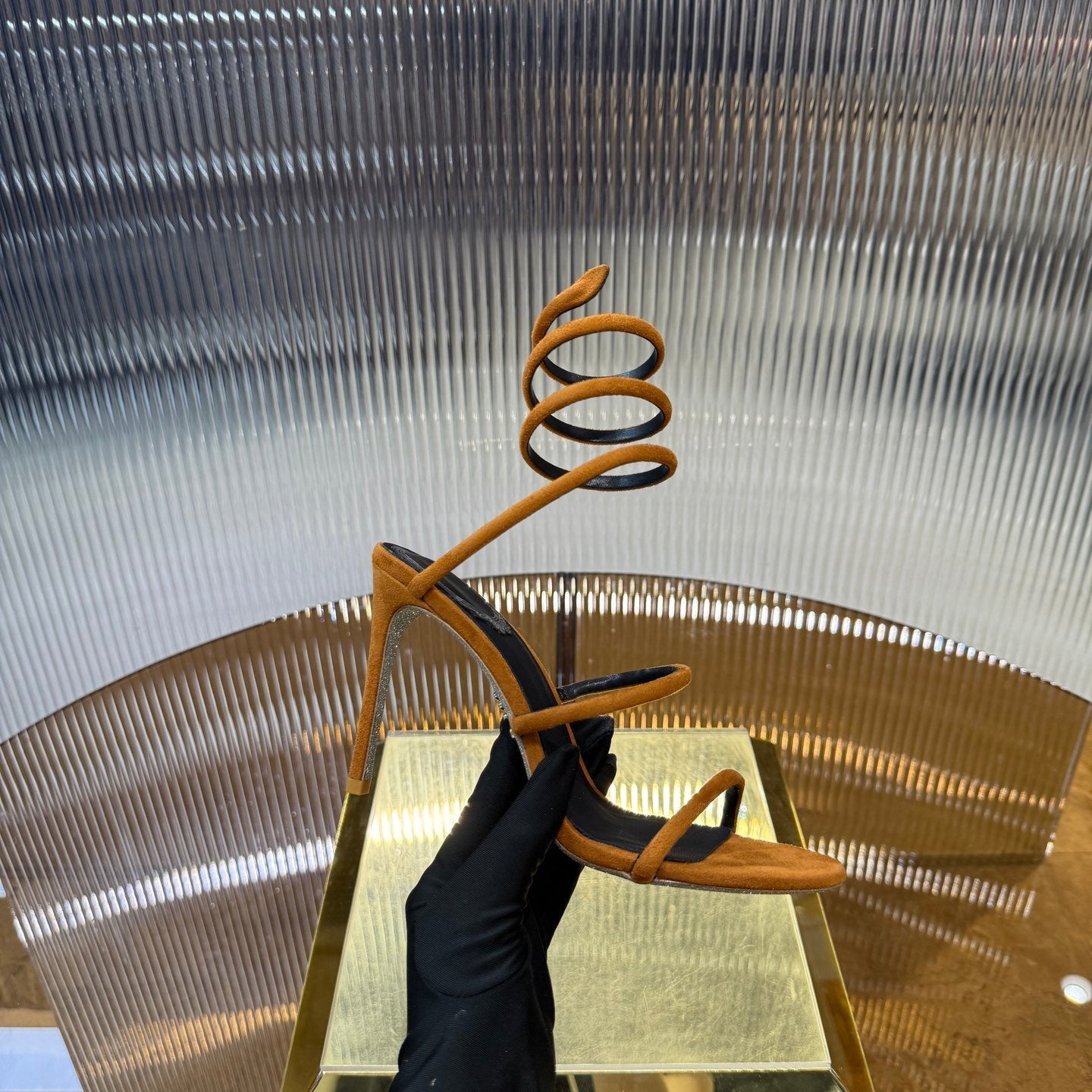 RC 25C High Heel Short Boots Mid-Tube Open-Toe Sandals Gold Sheepskin 174957