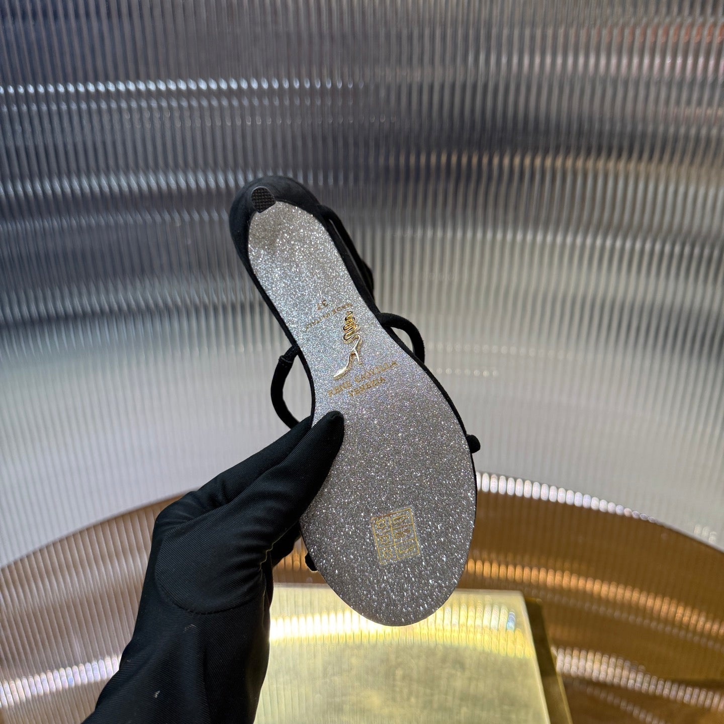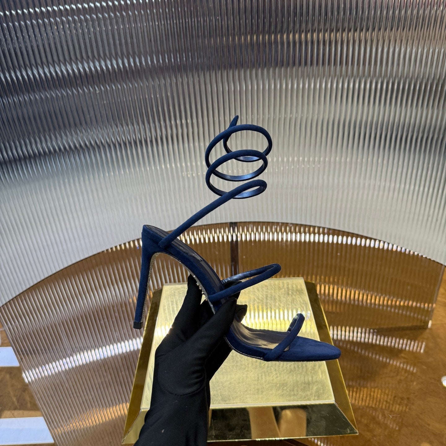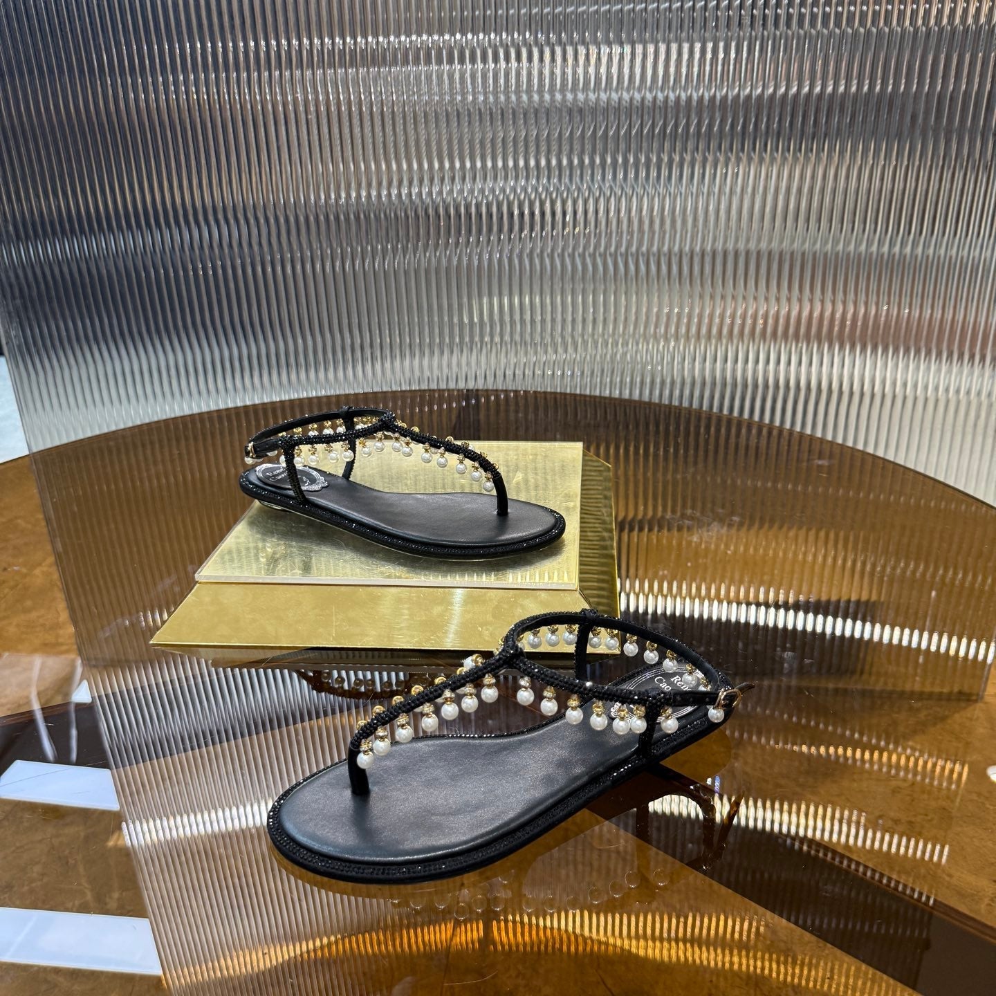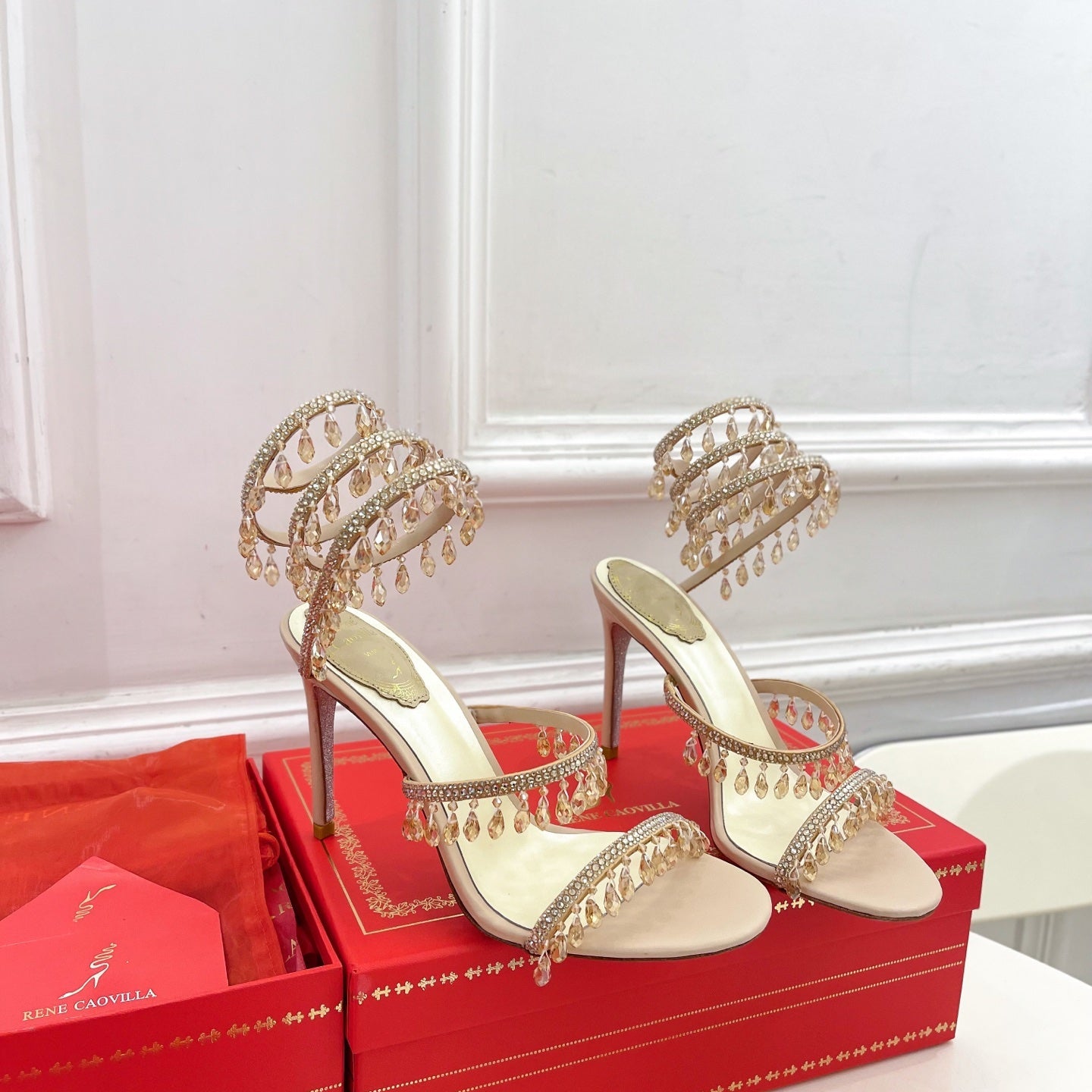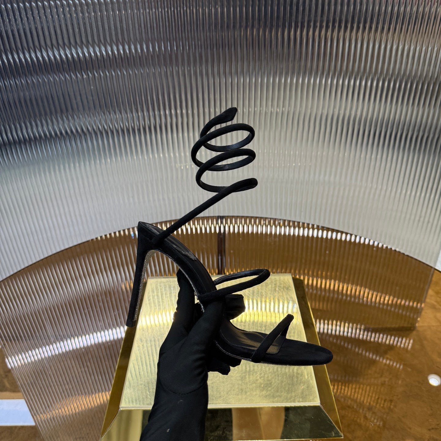 RC 25C High Heel Short Boots Mid-Tube Open-Toe Sandals Gold Sheepskin 174957