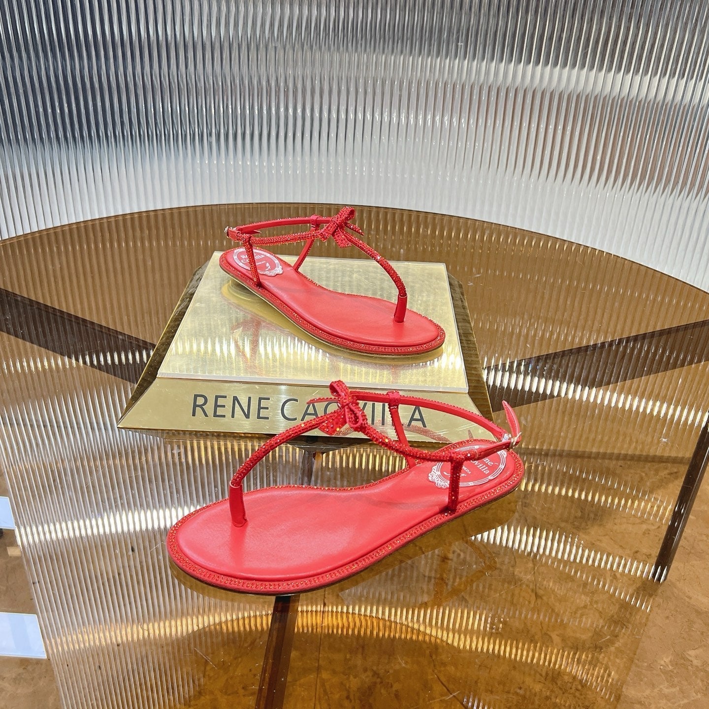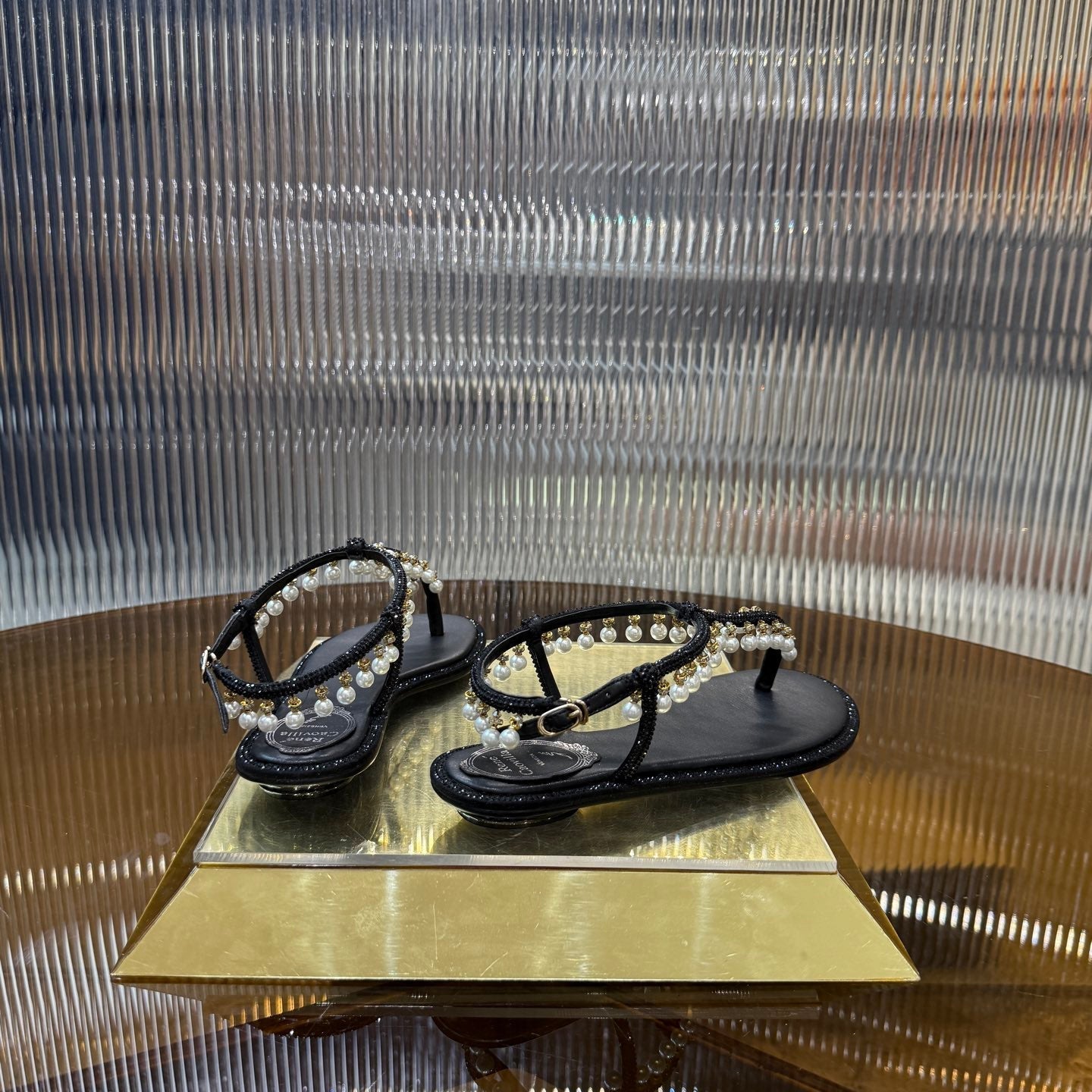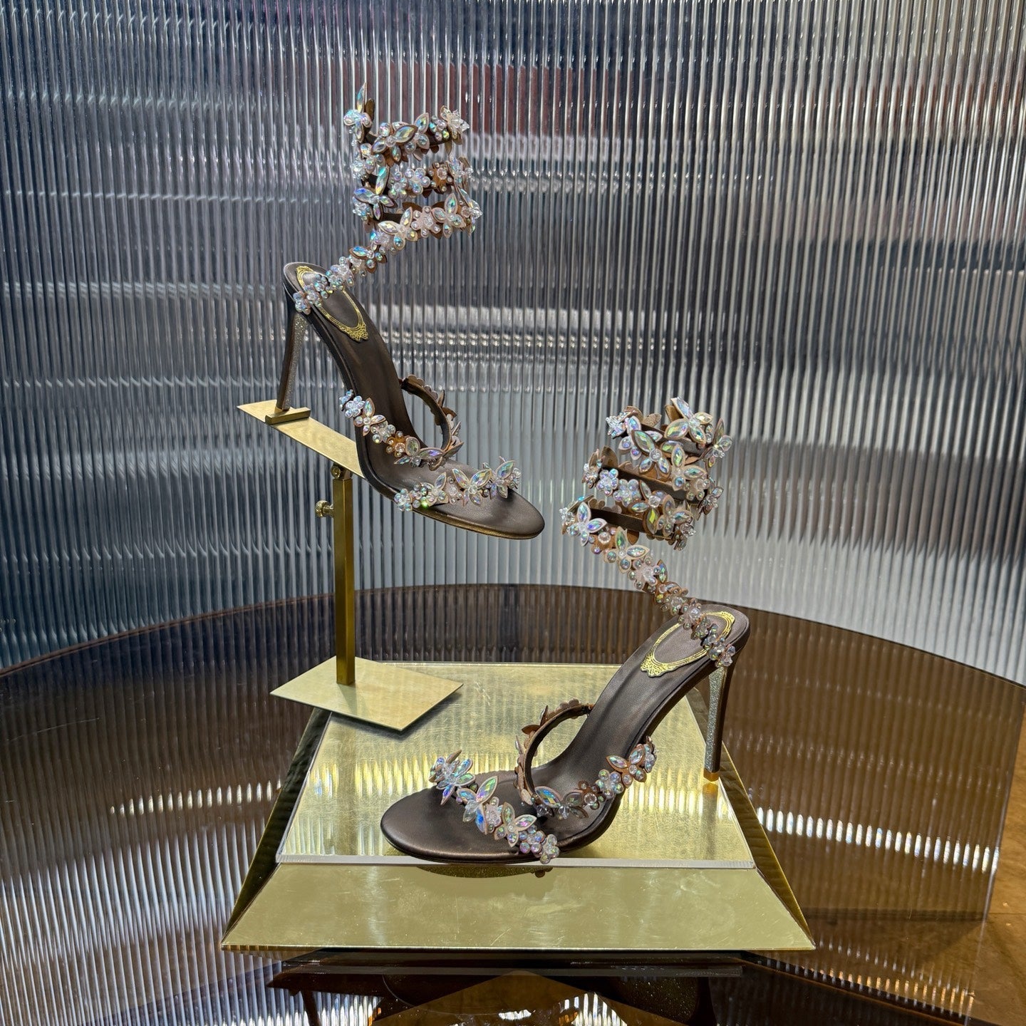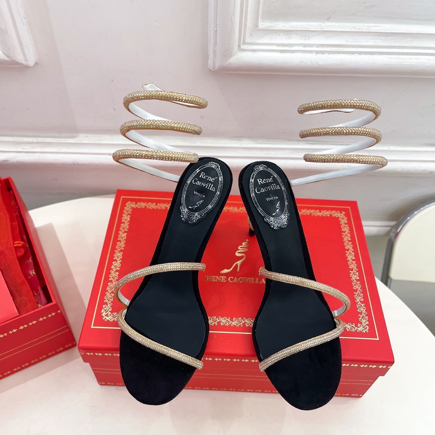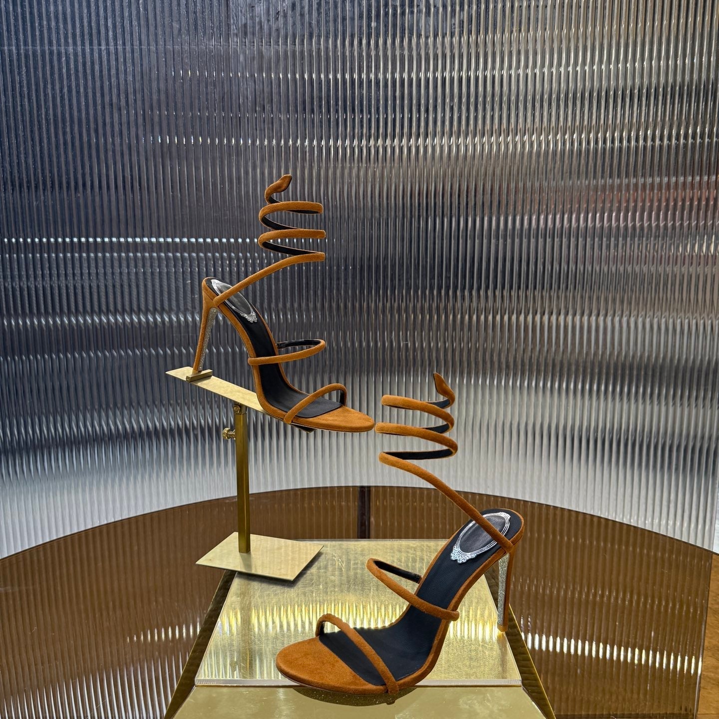 RC 25C High Heel Short Boots Mid-Tube Open-Toe Sandals Gold Sheepskin 174957
