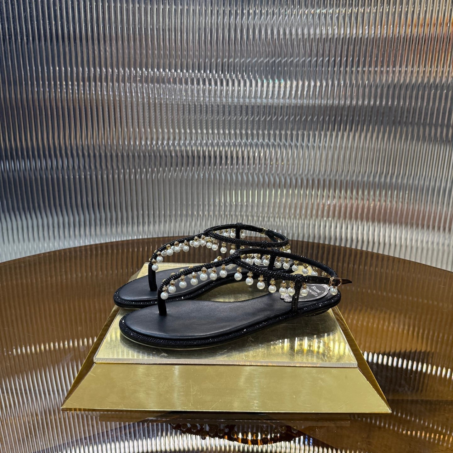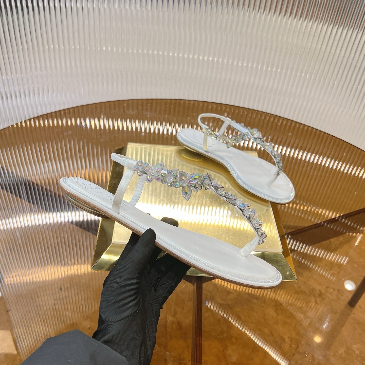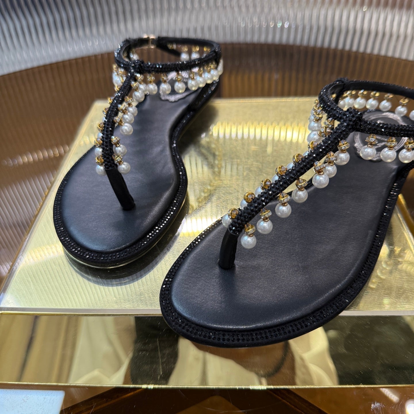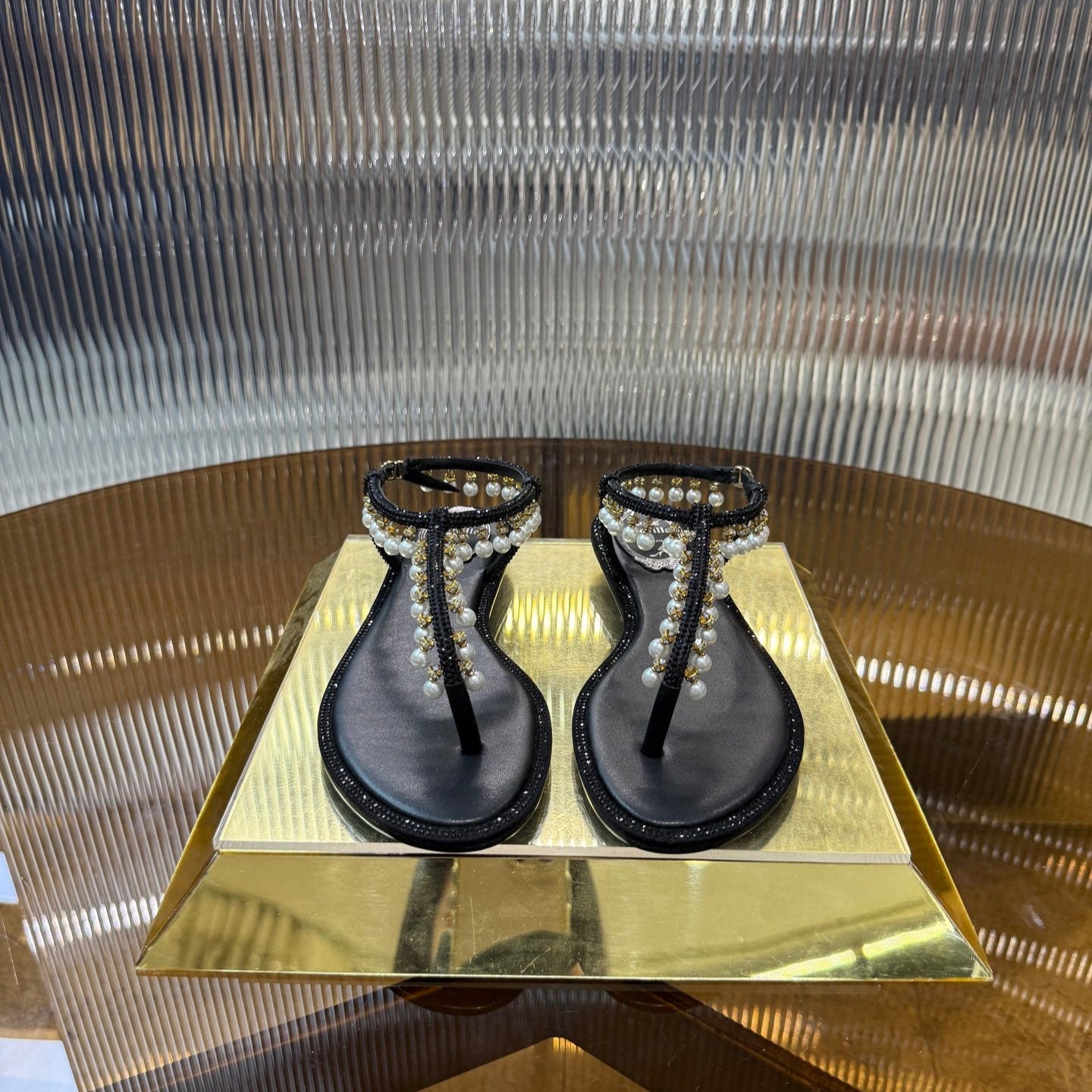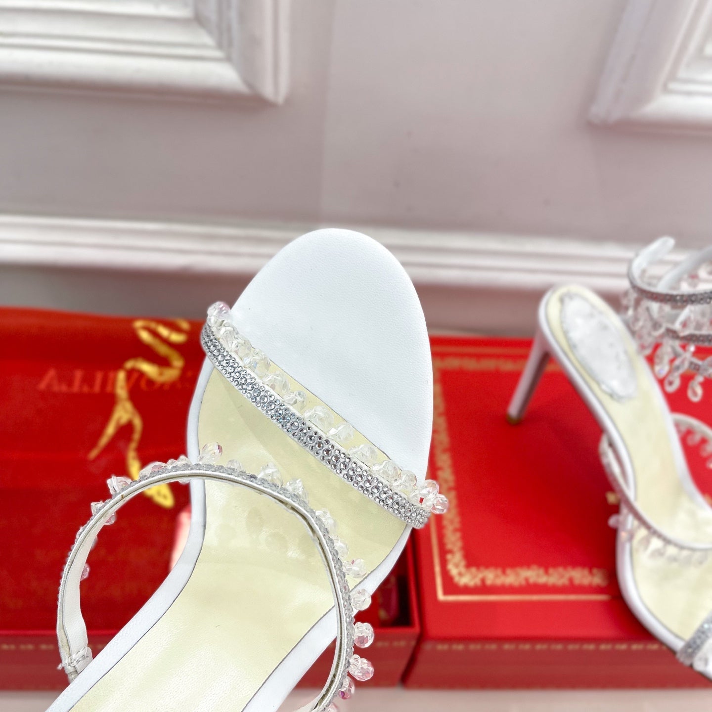RC 25C High Heel Short Boots Mid-Tube Open-Toe Sandals Gold Sheepskin 174957