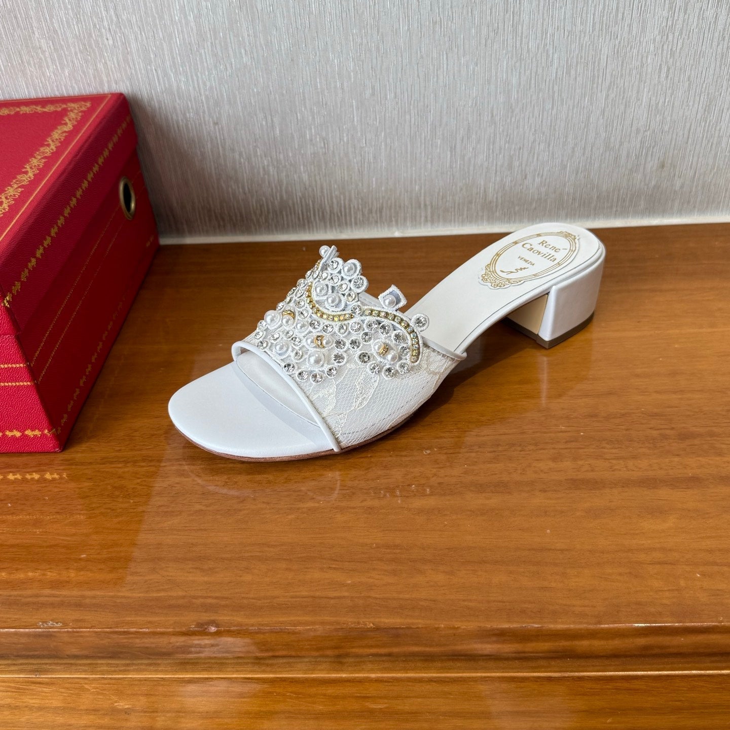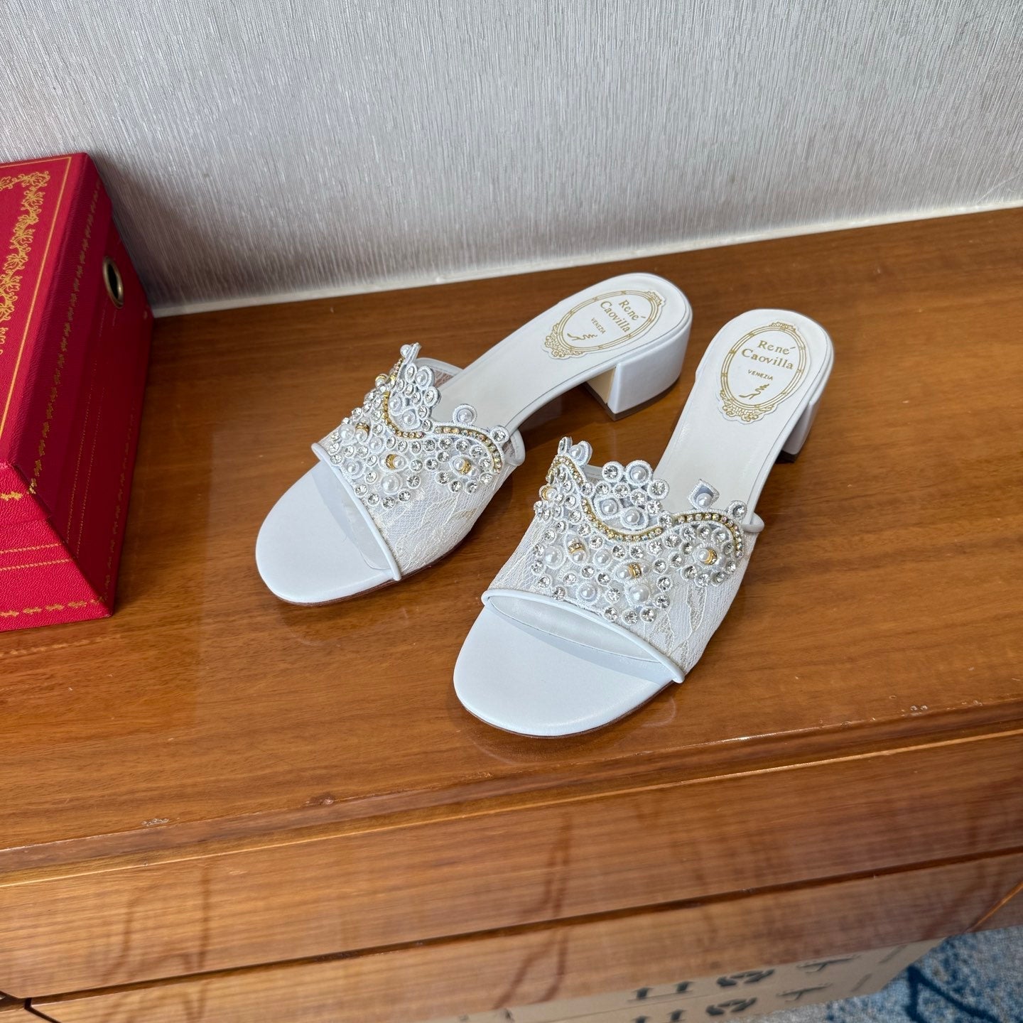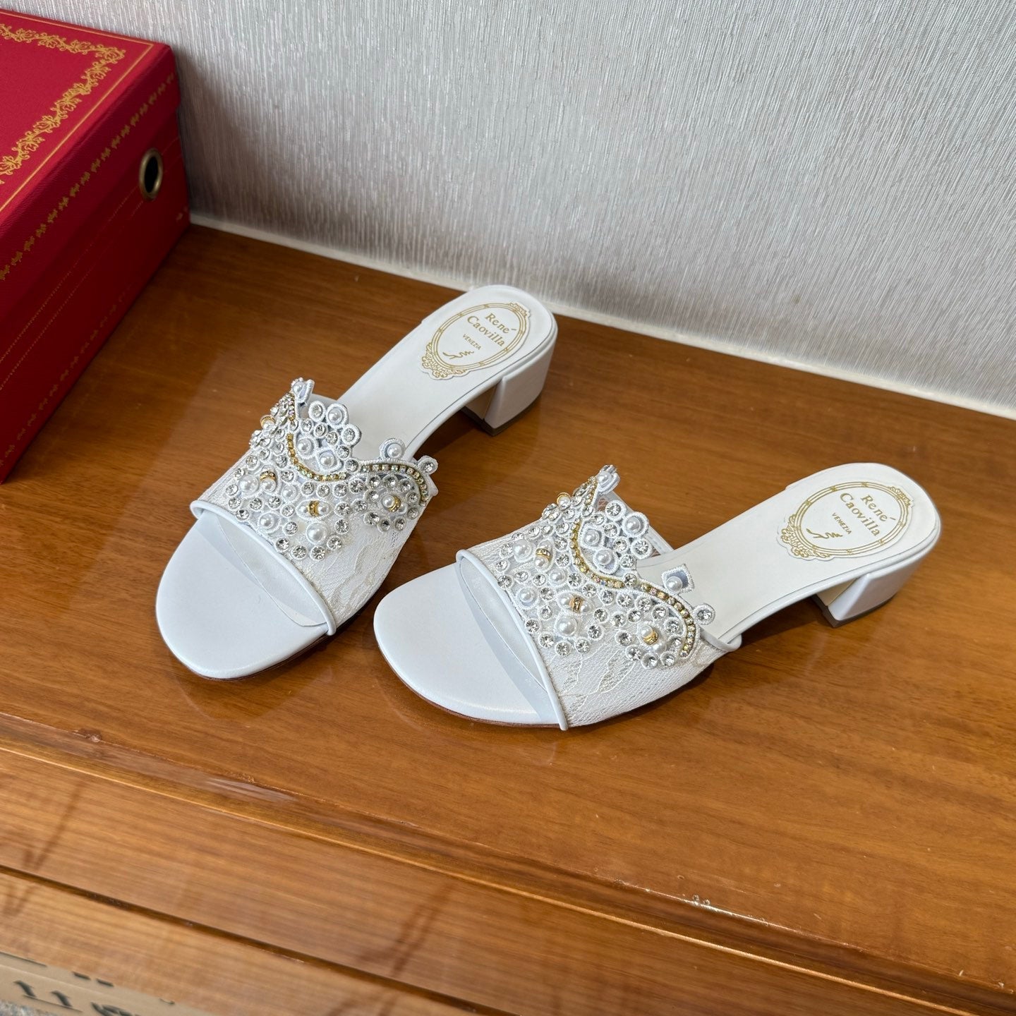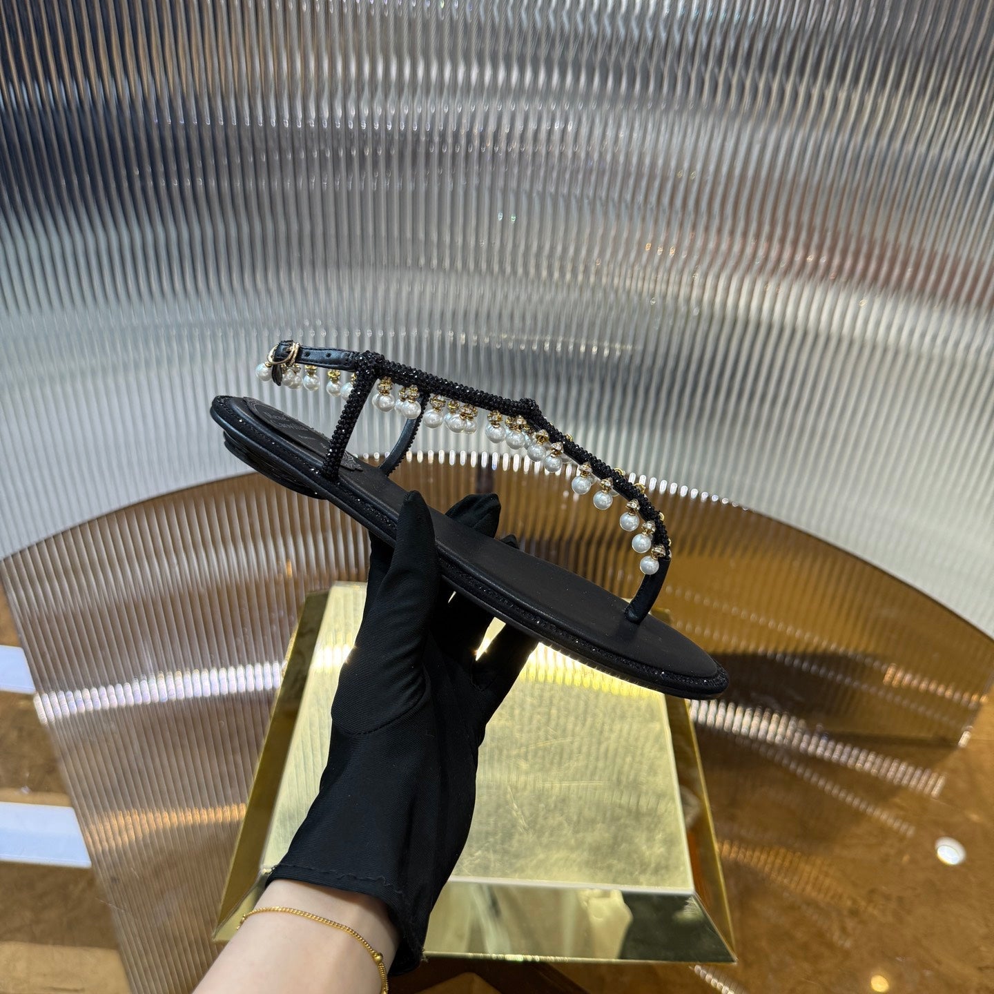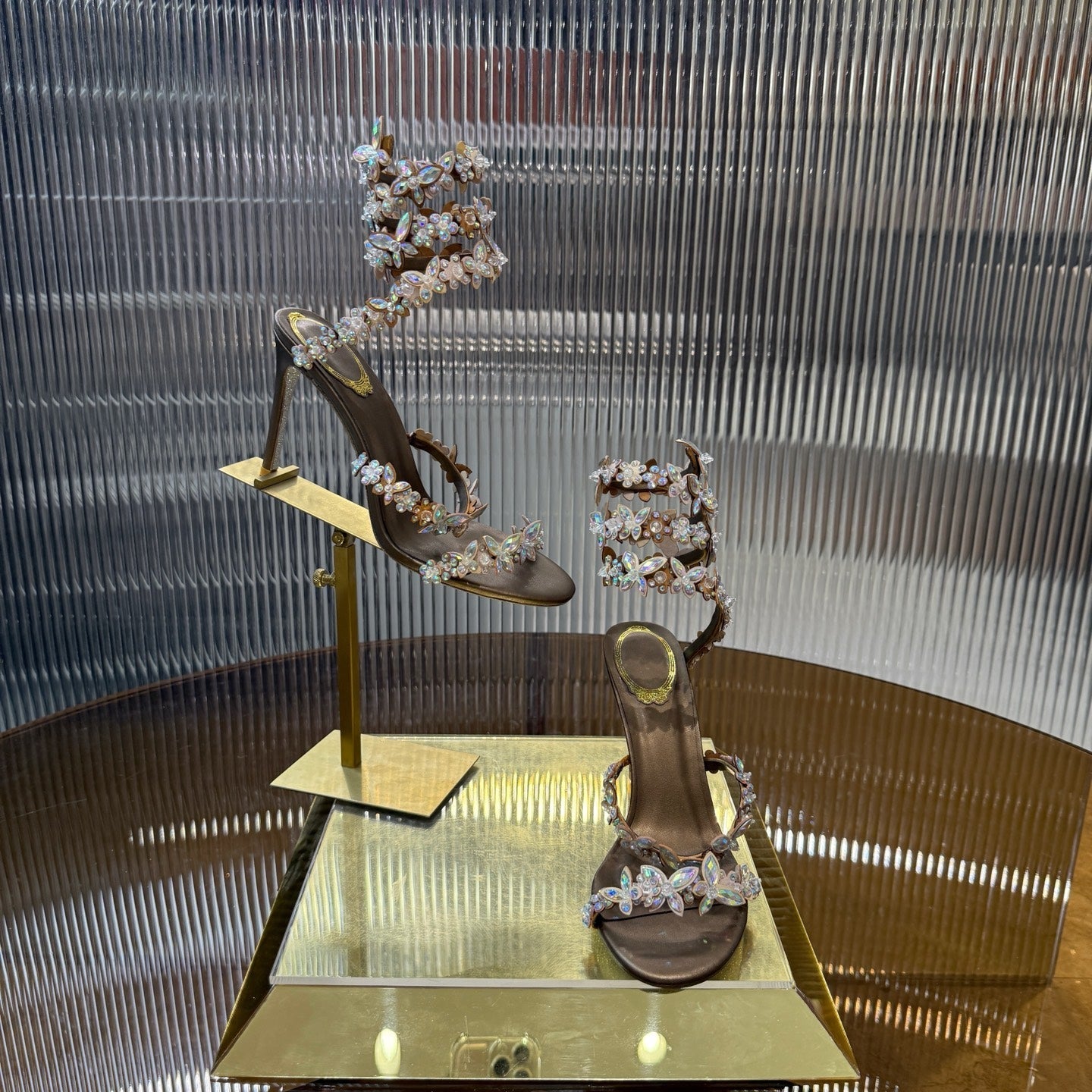 RC 25C High Heel Short Boots Mid-Tube Open-Toe Sandals Gold Sheepskin 174957