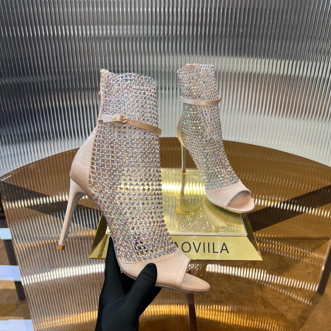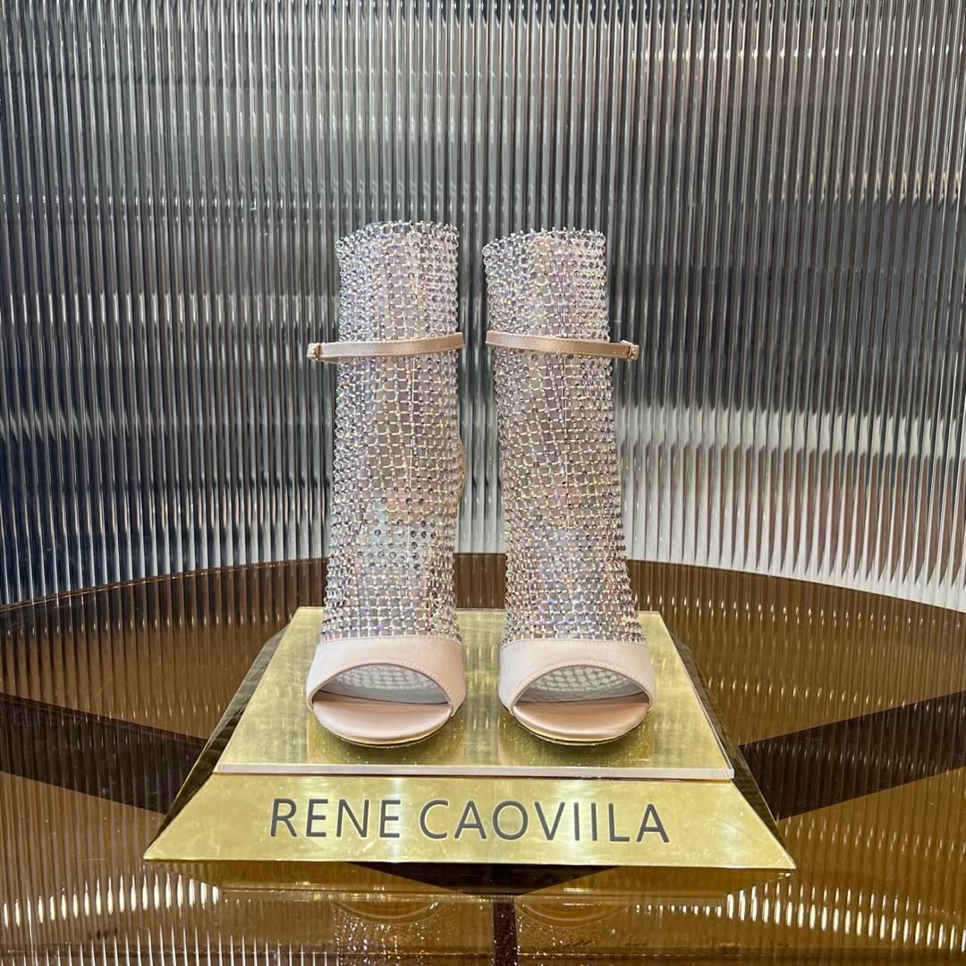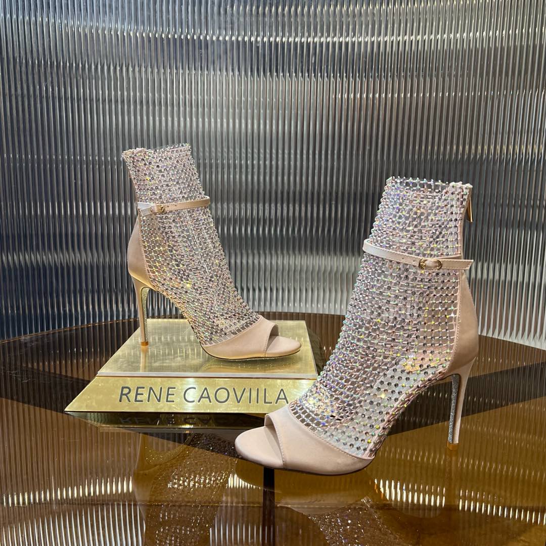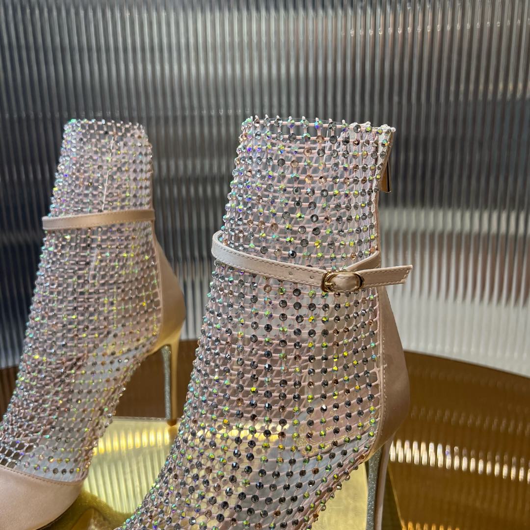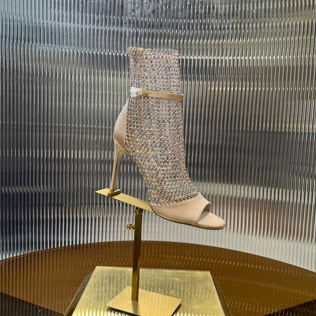 RC 25C High Heel Short Boots Mid-Tube Open-Toe Sandals Pink Sheepskin 174965