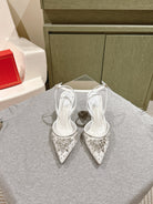 RC 25C Slingback Crystal High Heel 7.5cm White Silk Rhinestones 268080