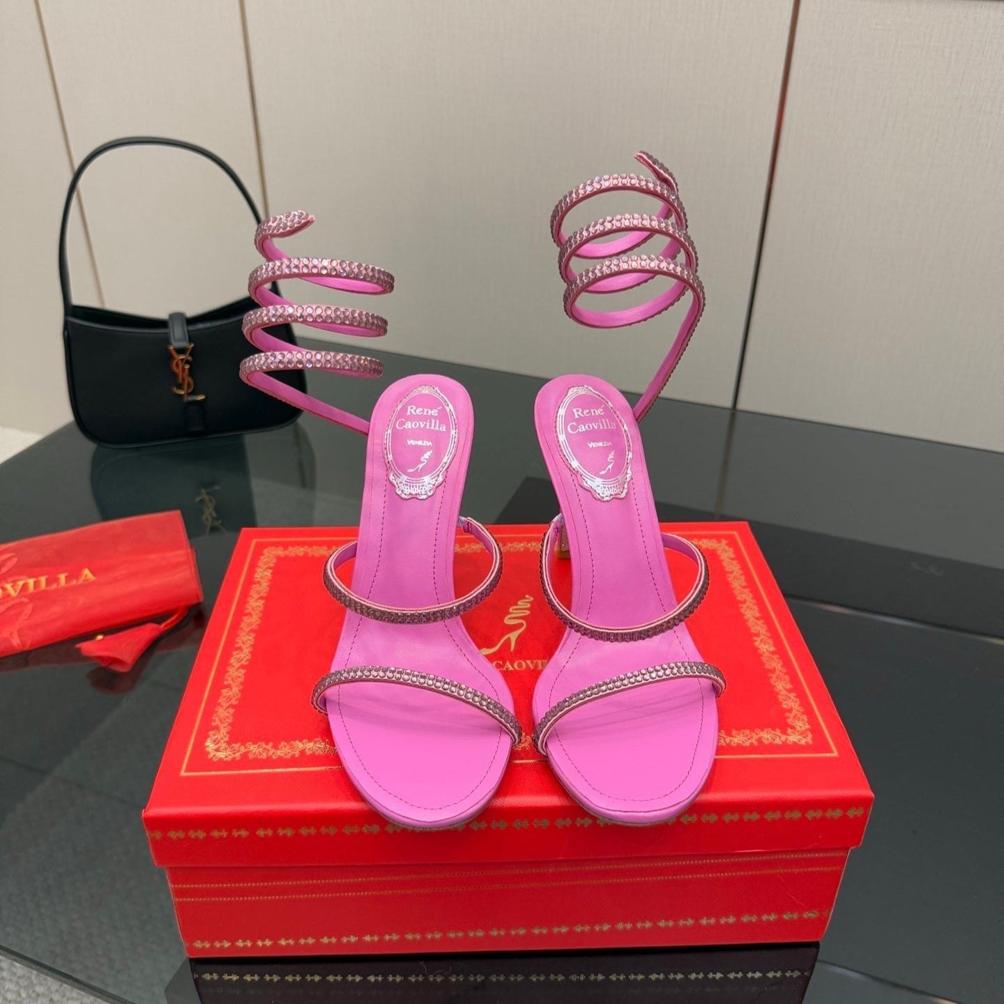 RC Sandals 9.5cm Dark Pink Silk Creole Crystal Diamond 302607
