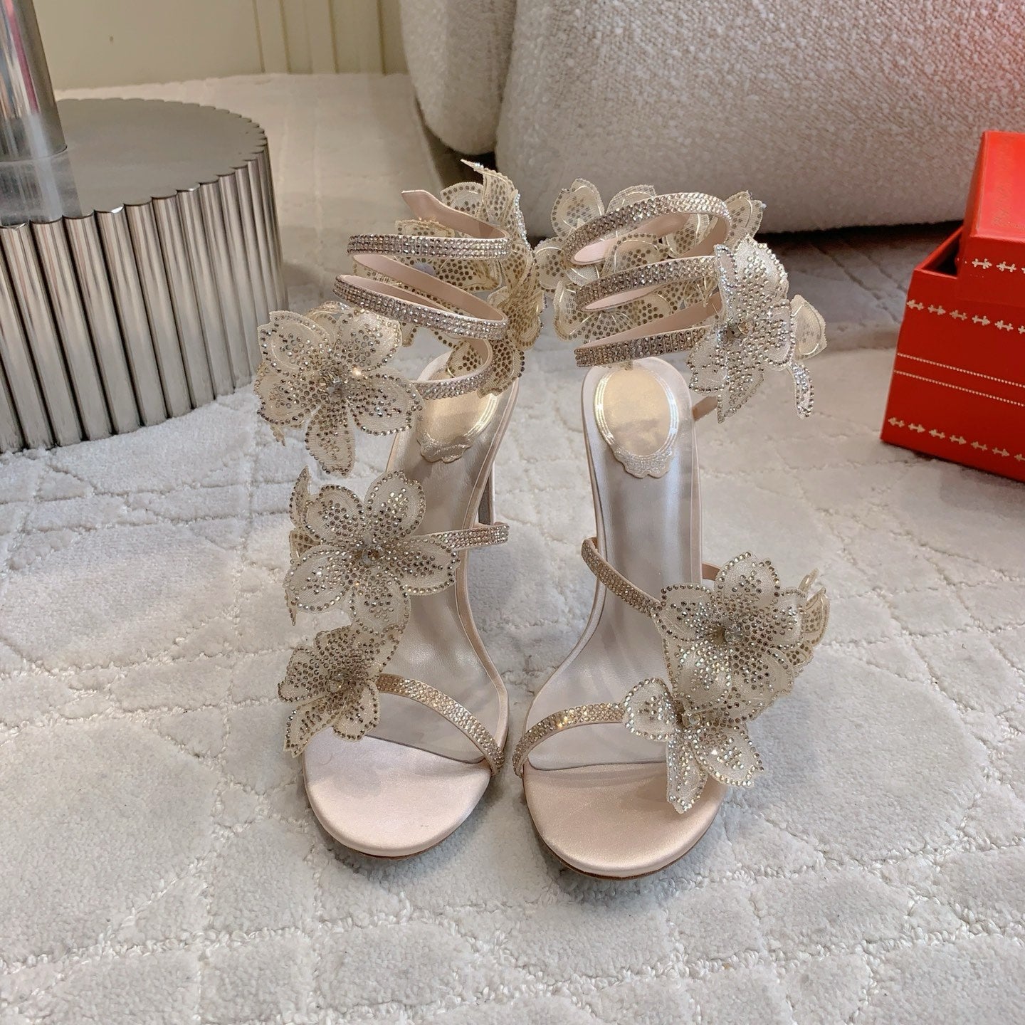 RC Sandals 9.5cm White Rhinestone Silk 302585
