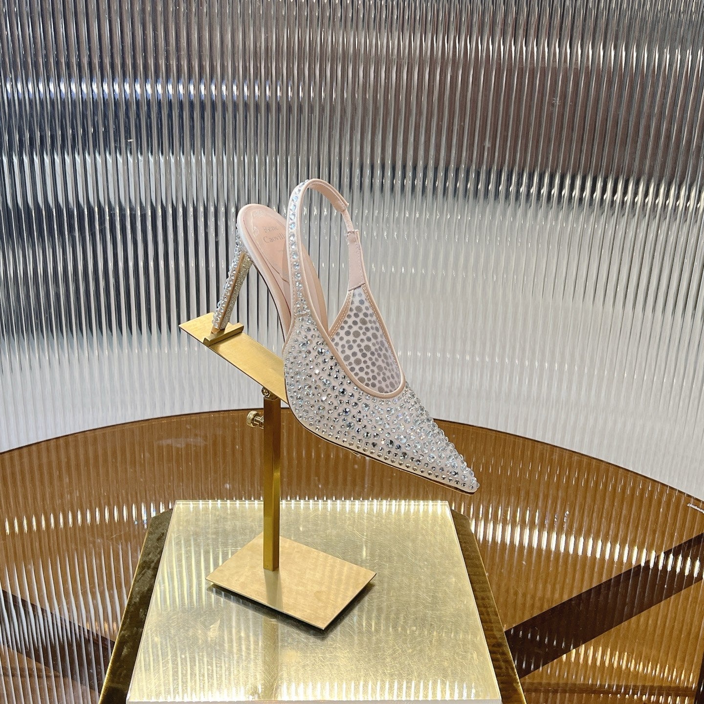 RC Slingback 1cm White Rhinestone Sheepskin 281983