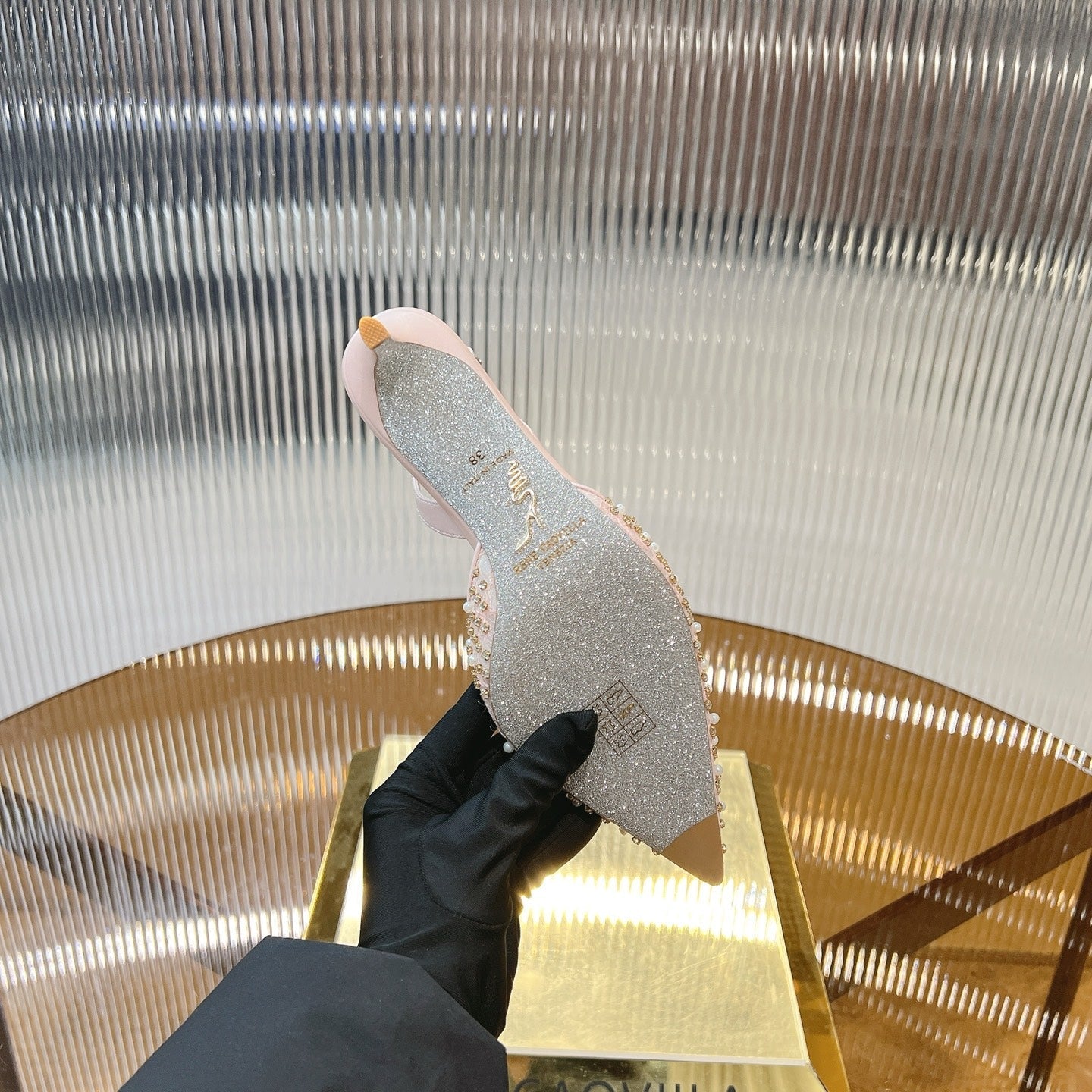 RC Slingback Shoe 1cm Pink Rhinestone Sheepskin 281984