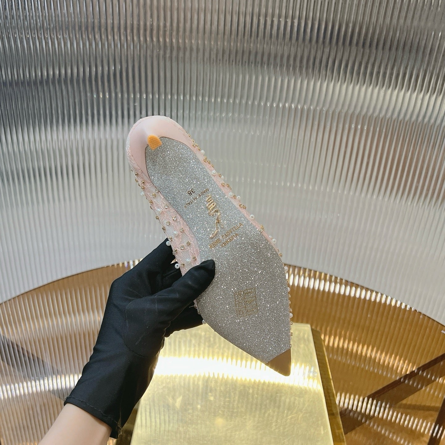 RC Scarpin Shoe 7.5cm Pink Rhinestone Sheepskin 281988
