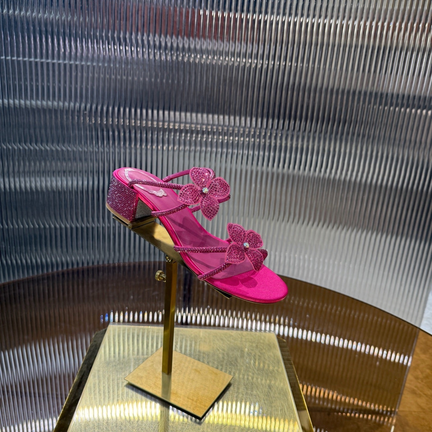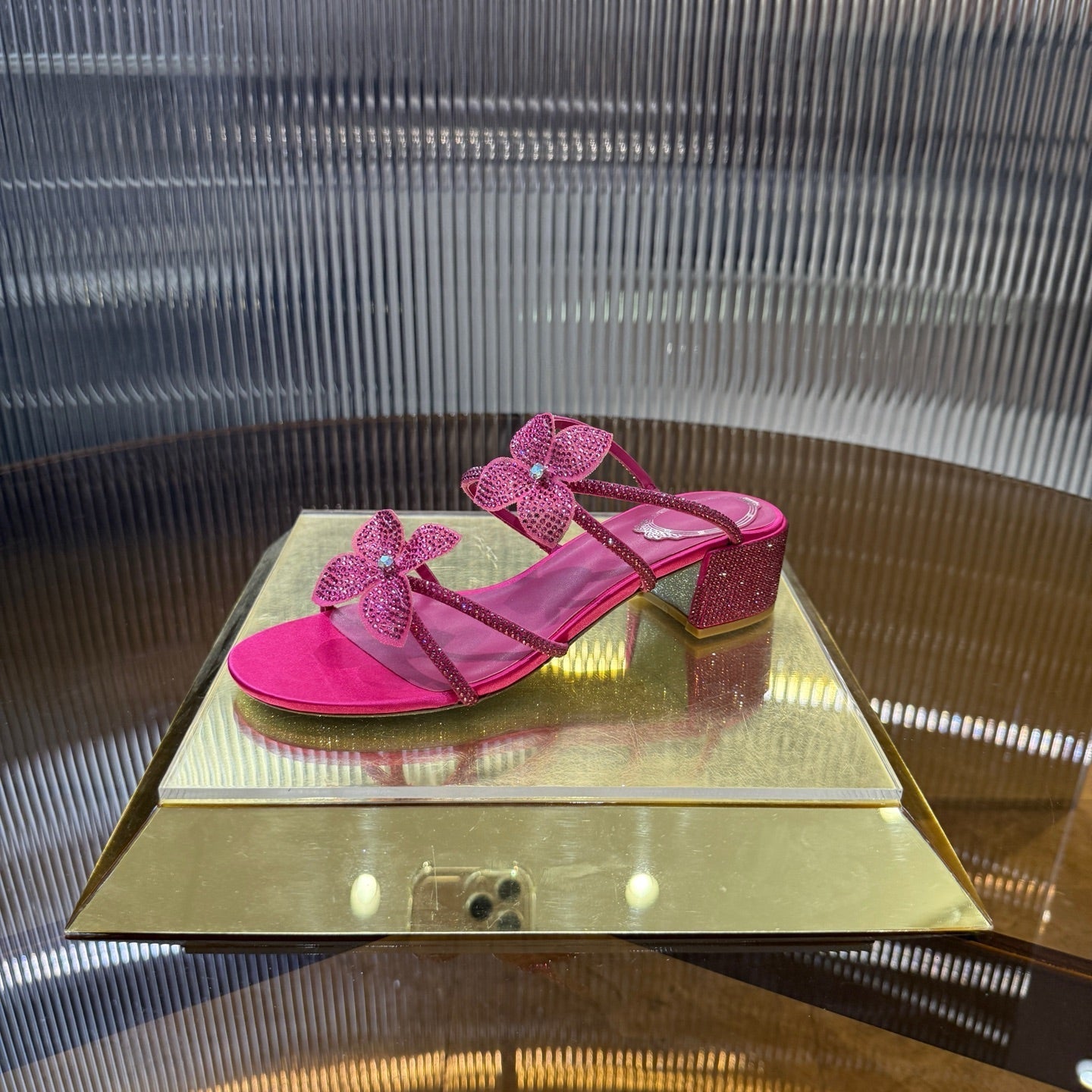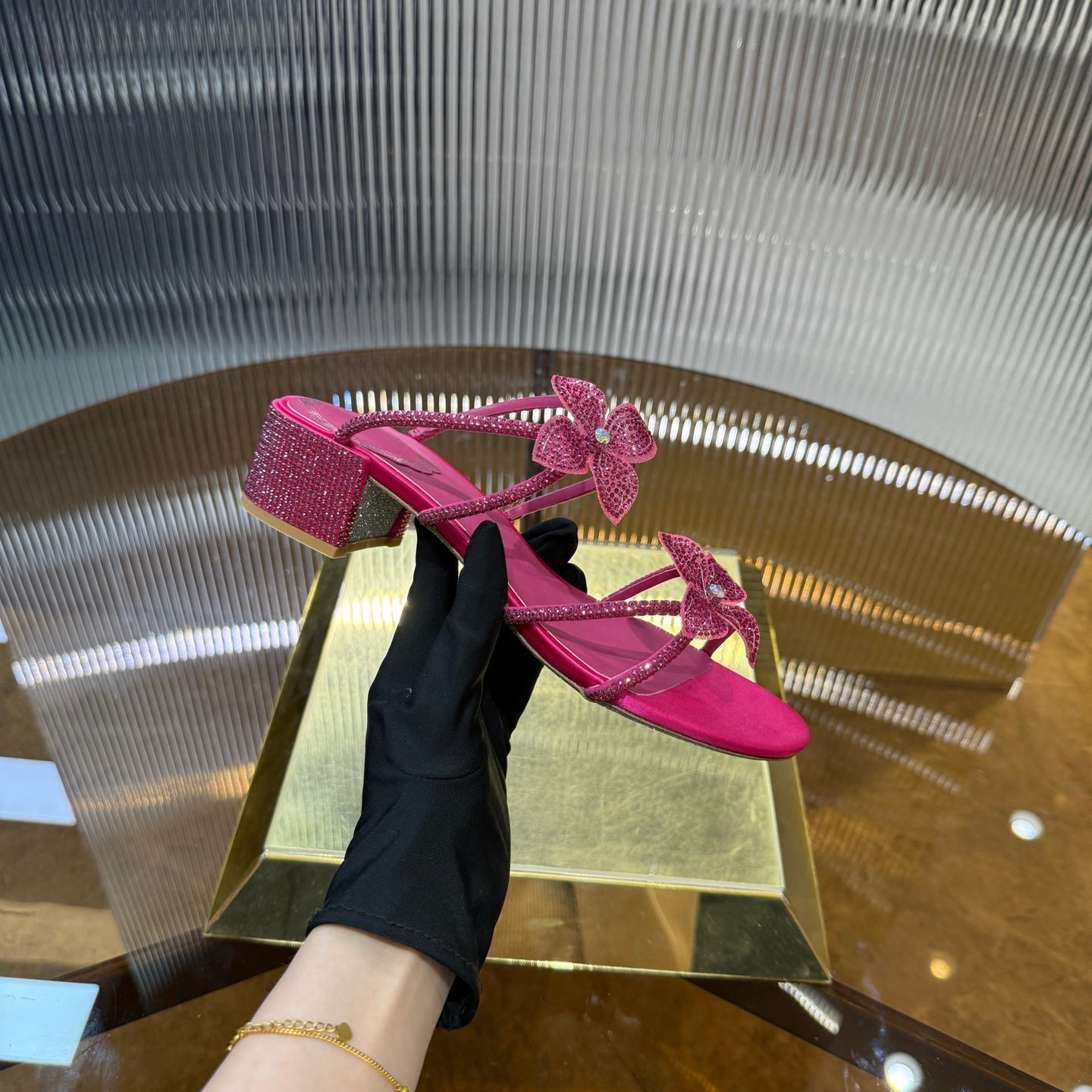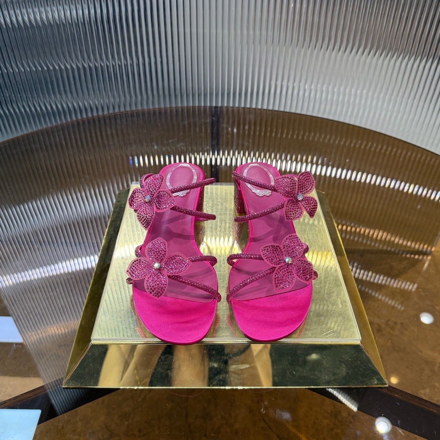 RC Sandals 9.5cm Dark Pink Silk Creole Crystal Diamond 302607