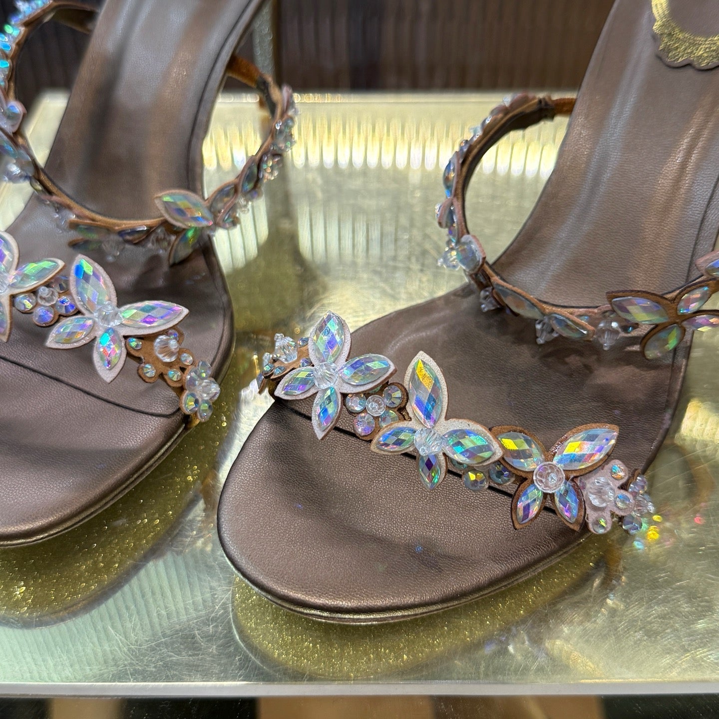 RC 25C Butterfly Flower Sandals Brown Sheepskin Rhinestones 310660