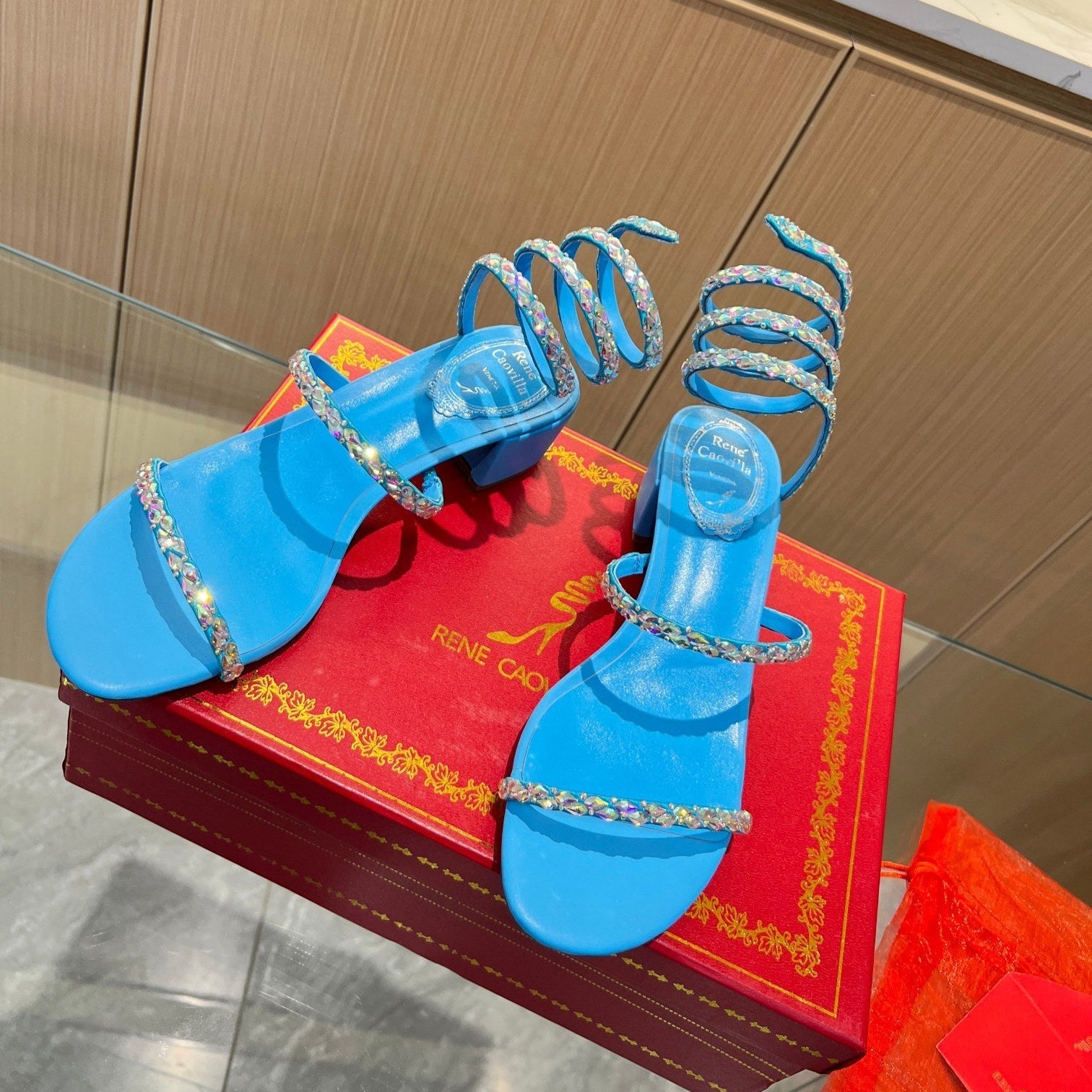 RC Diamond Sandals Blue Silk Creole Glass Diamond 341986