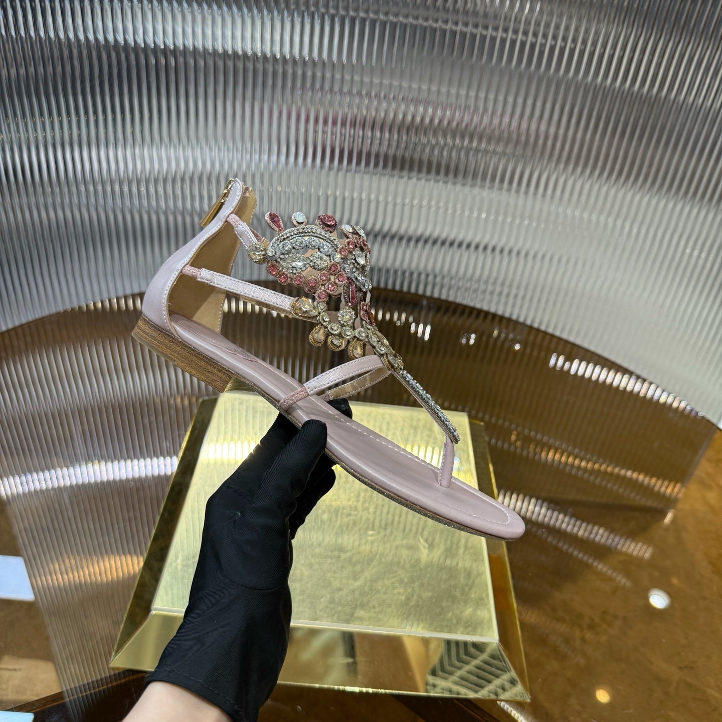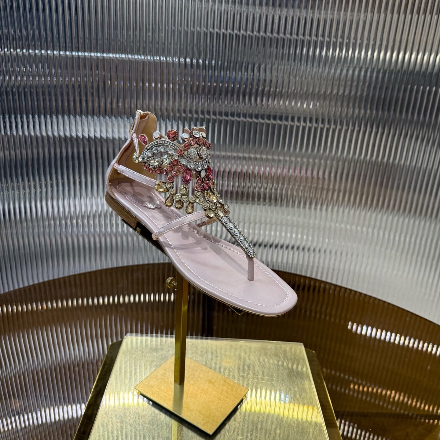 RC 25C Thong Diamond Sandals Pink Gold Sheepskin Rhinestone 339505