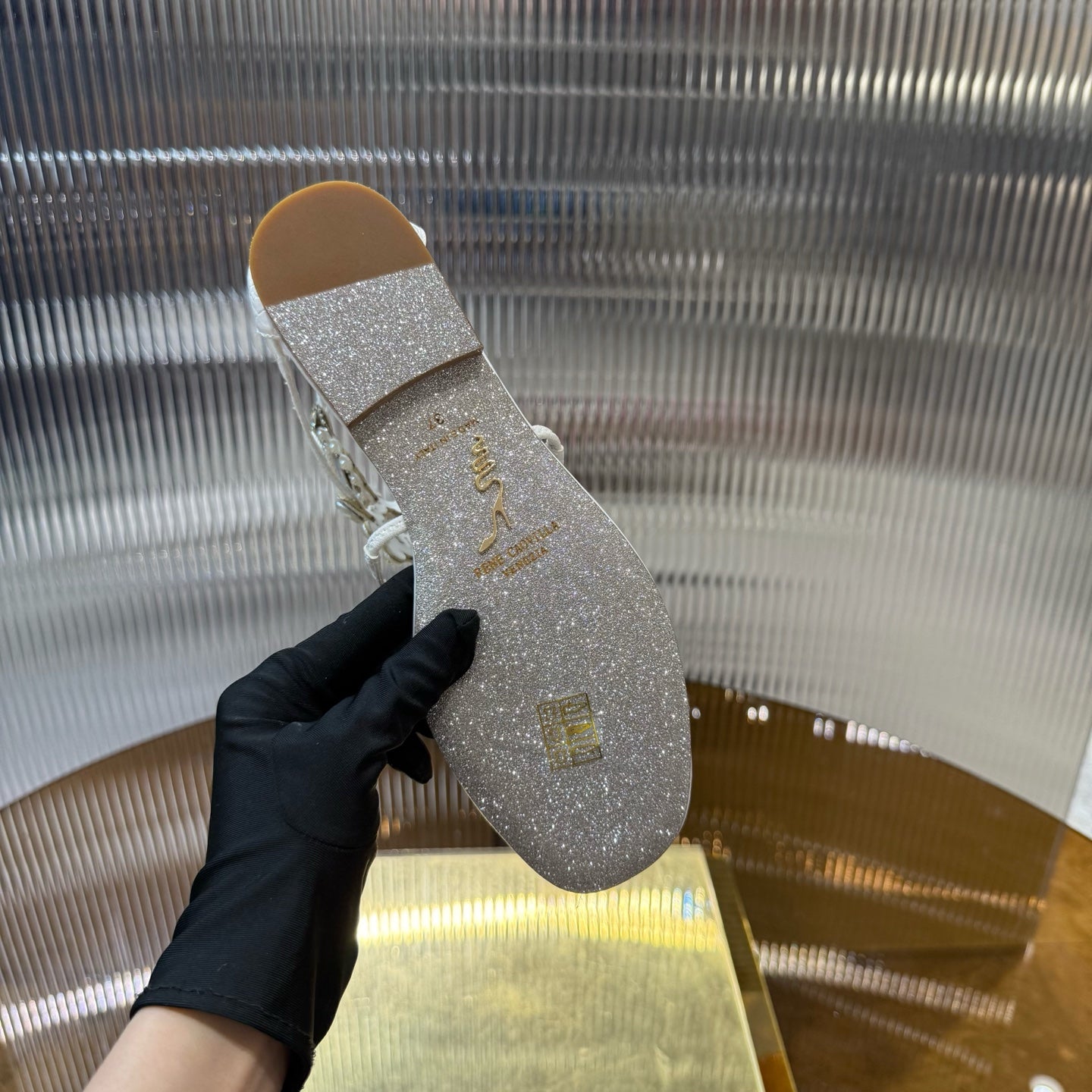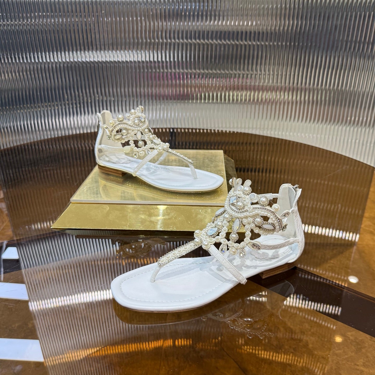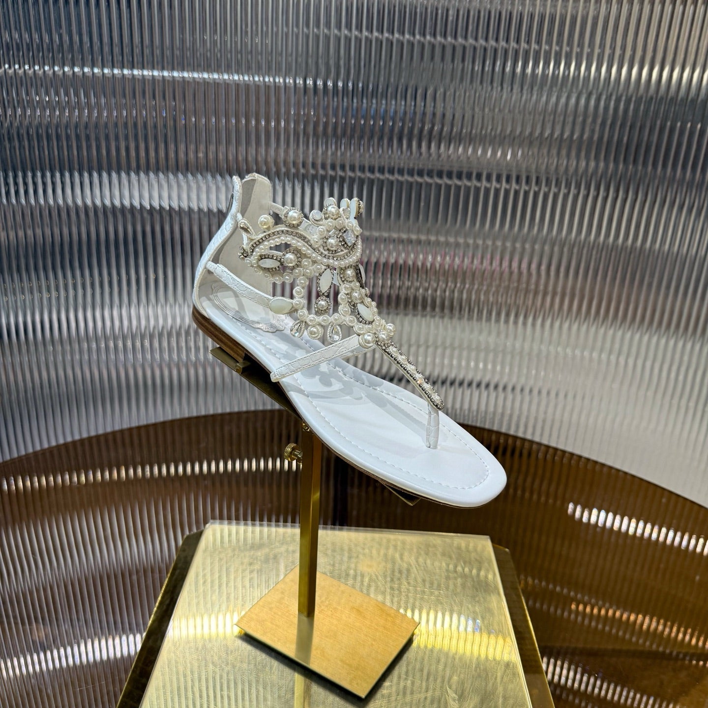 RC Diamond Sandals White Silk Creole Glass Diamond 341982