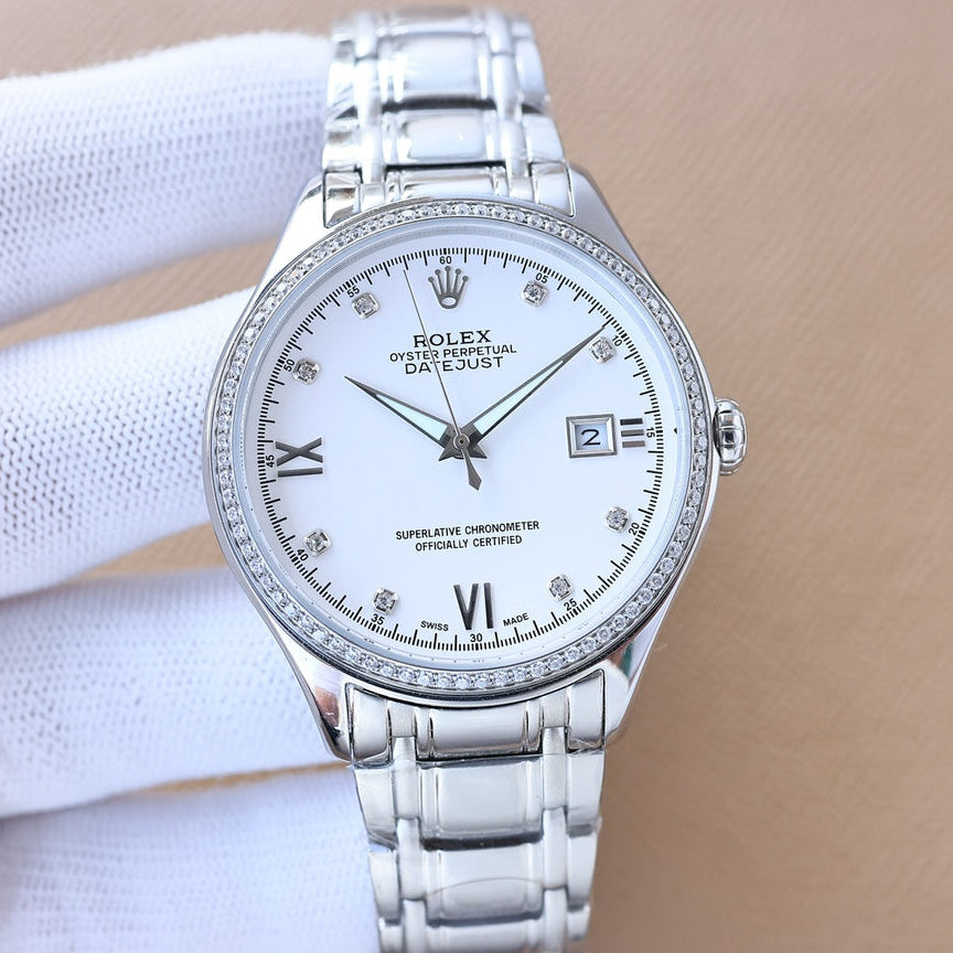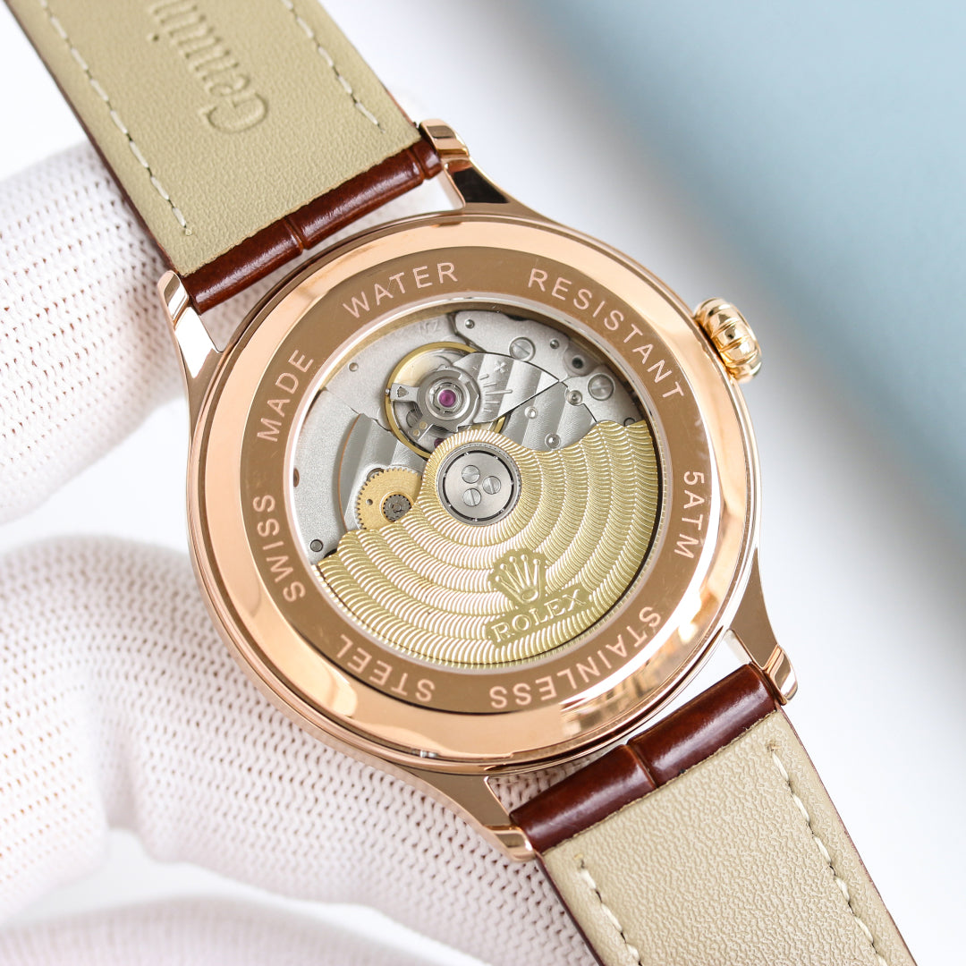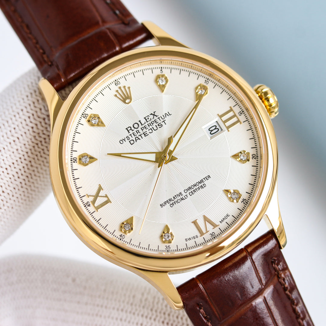 Rolex Datejust 40mm Silver Pink Gold Leather