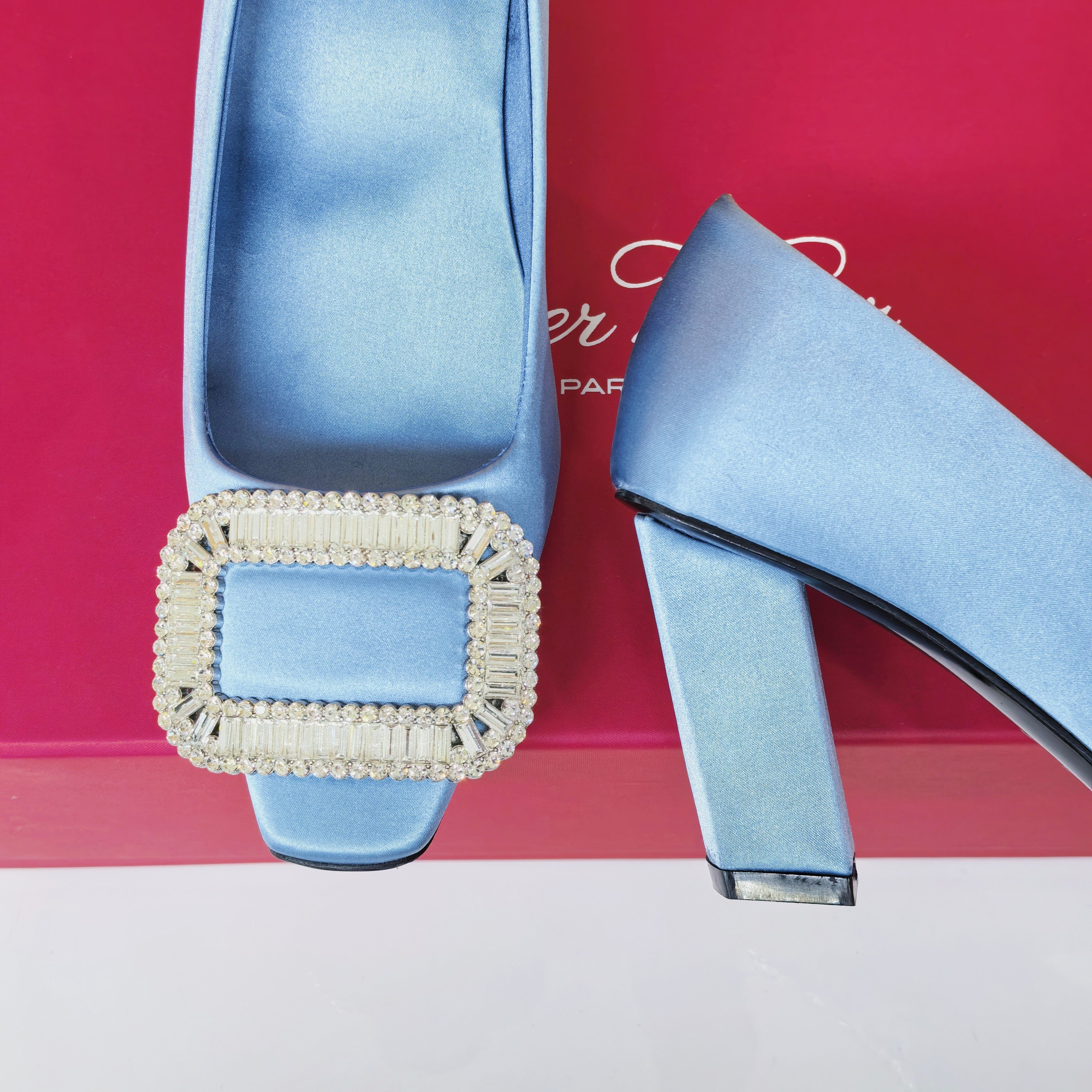 Viv 25 Flower Slingback Blue Italian Leather 300787