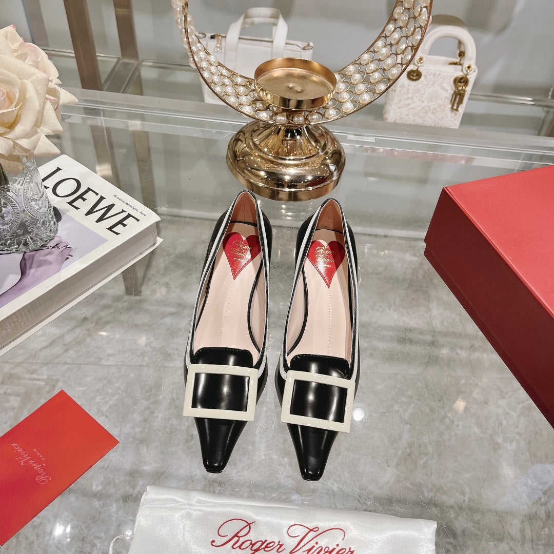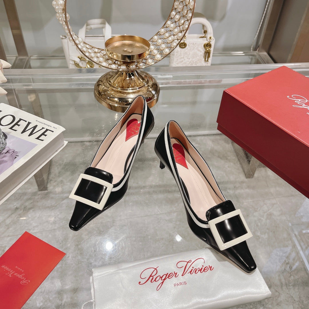 Belle Viv Metal Buckle Pumps 65 Black White Patent Leather