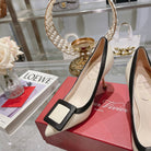 Belle Viv Metal Buckle Pumps 85 White Black Patent Leather