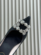 Flower Strass Buckle Pump 85 Crystal Black Leather