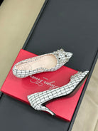 Flower Strass Buckle Pump 85 White Black Fabric