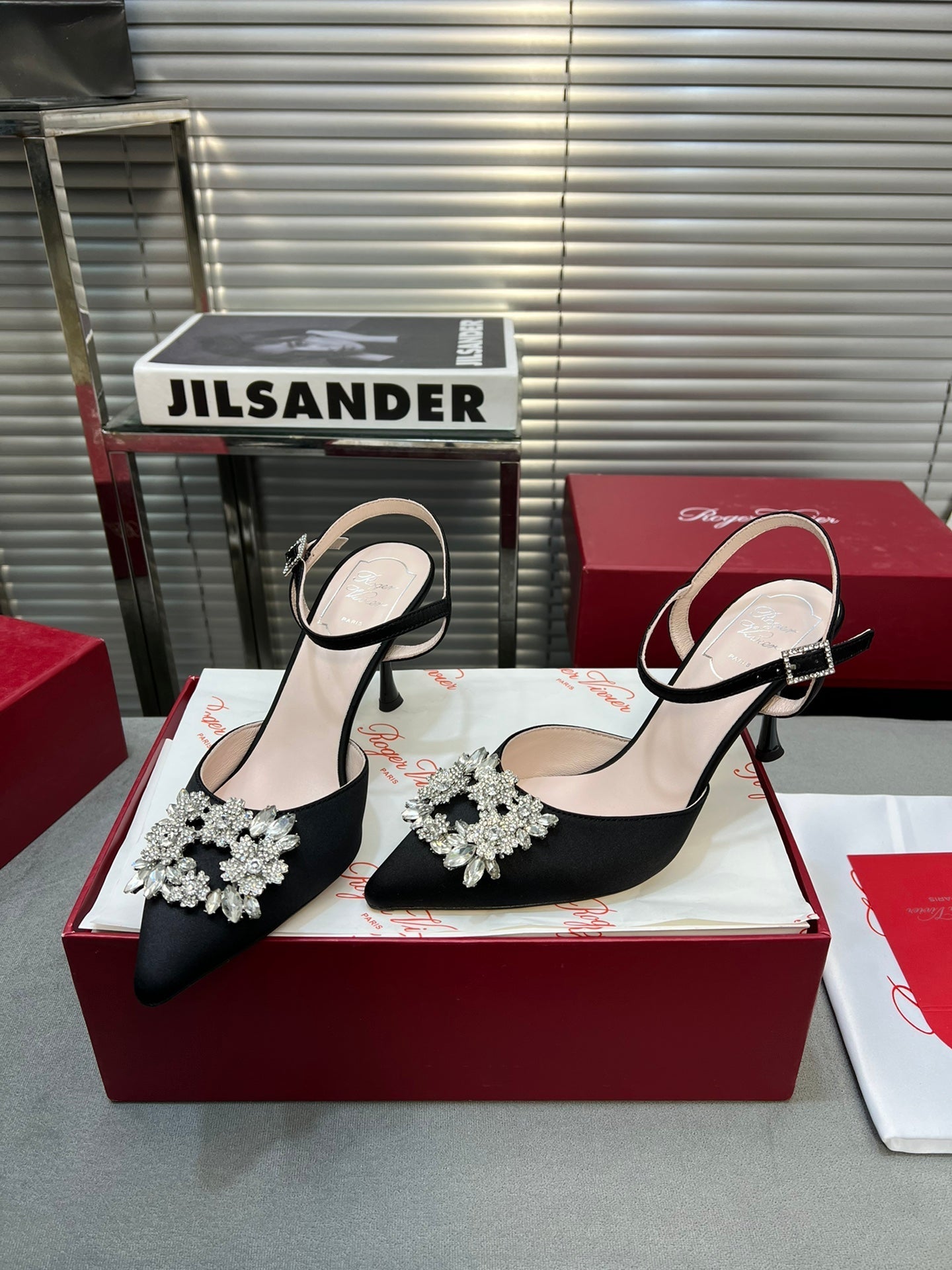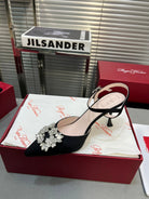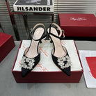 Flower Strass Buckle Slingback Pump 90 Black Satin