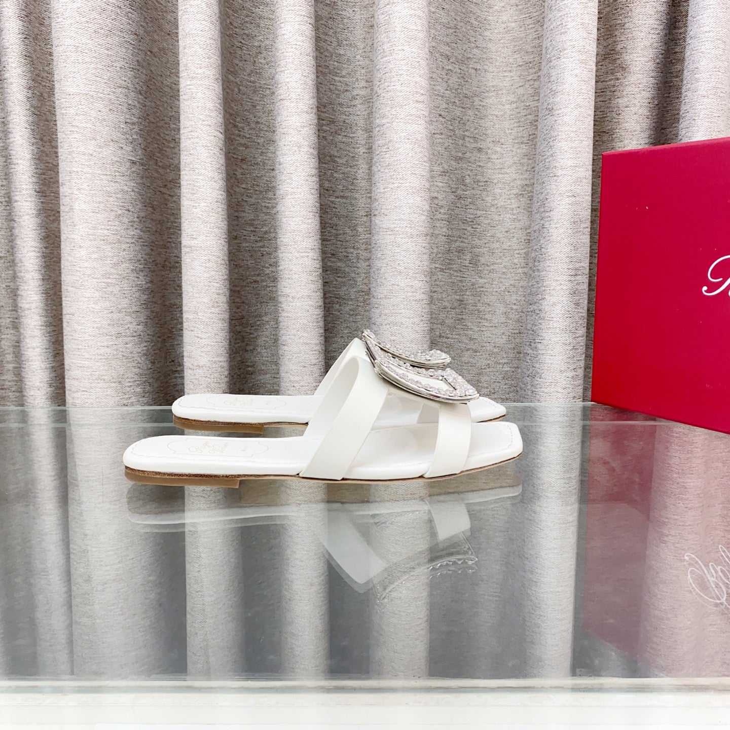 Viv 25 Diamond Flat Slippers White Cowhide 283036